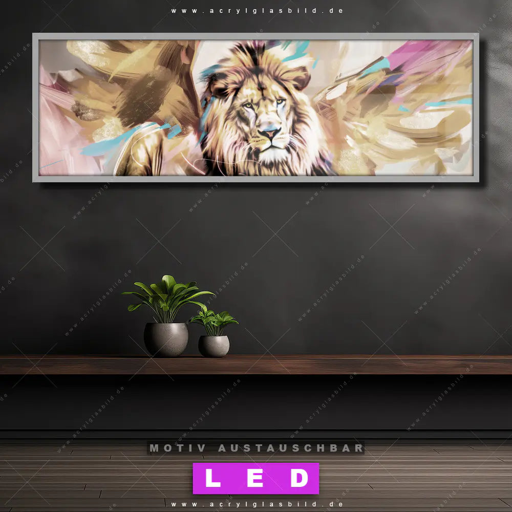 Deine Wände könnten dringend ein dimmbares LED Bild mit Fernbedienung und optionaler Farbtemperatursteuerung gebrauchen? Dann haben wir das perfekte Wandbild mit LED Beleuchtung für dich: unser mega-cooles Tierwelt Canvalight® DIA LED Acrylglasbild! Mit unserem angesagten Leuchtbild aus Acrylglas im Panorama-Format und der austauschbaren bedruckten Acrylglas-Scheibe Löwe - König der Tiere bringst du nicht nur Licht, sondern auch jede Menge Flair in deine Räume.