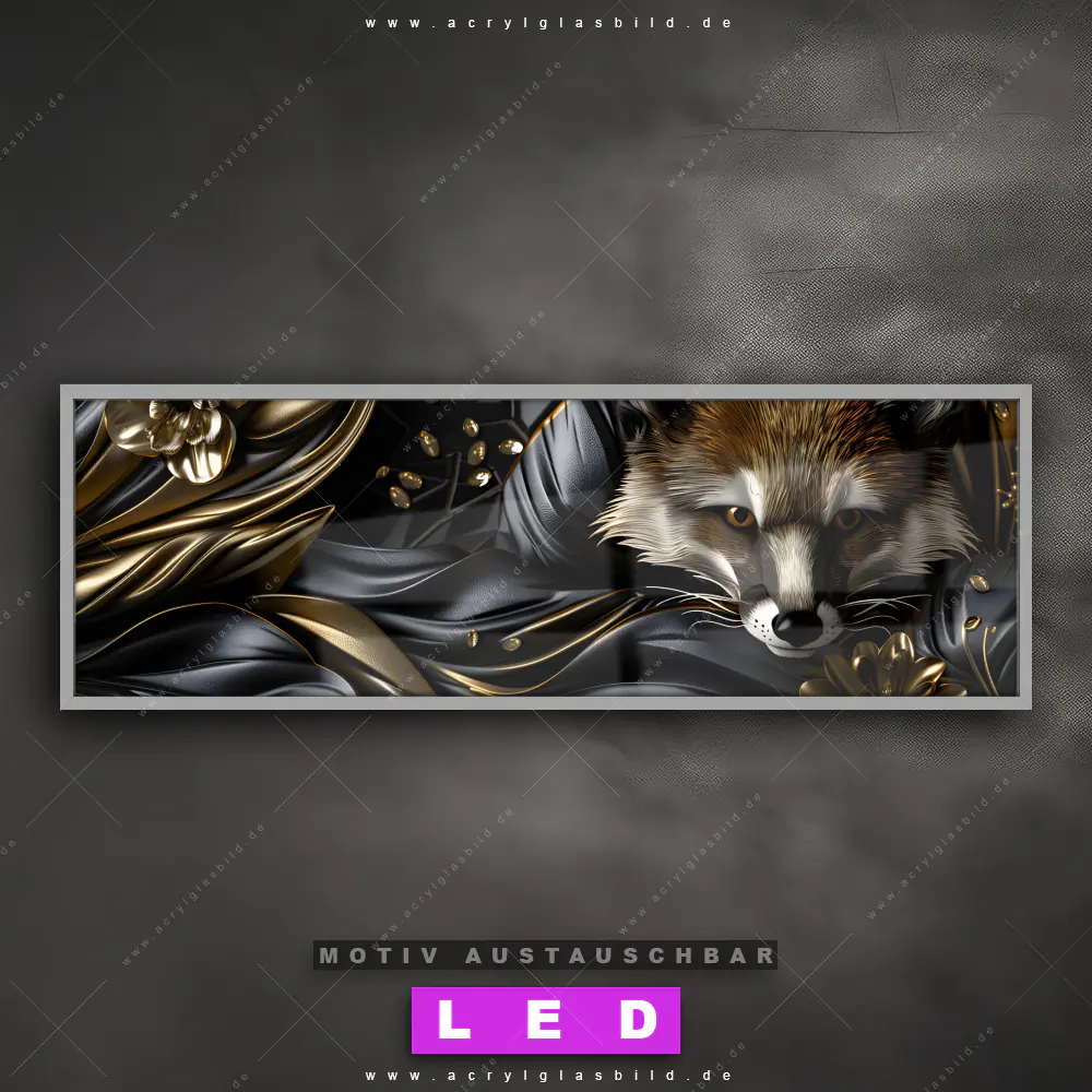 LED Acrylglasbild Canvalight® DIA | Luxuriöser Fuchs mit Blumen | Panorama
