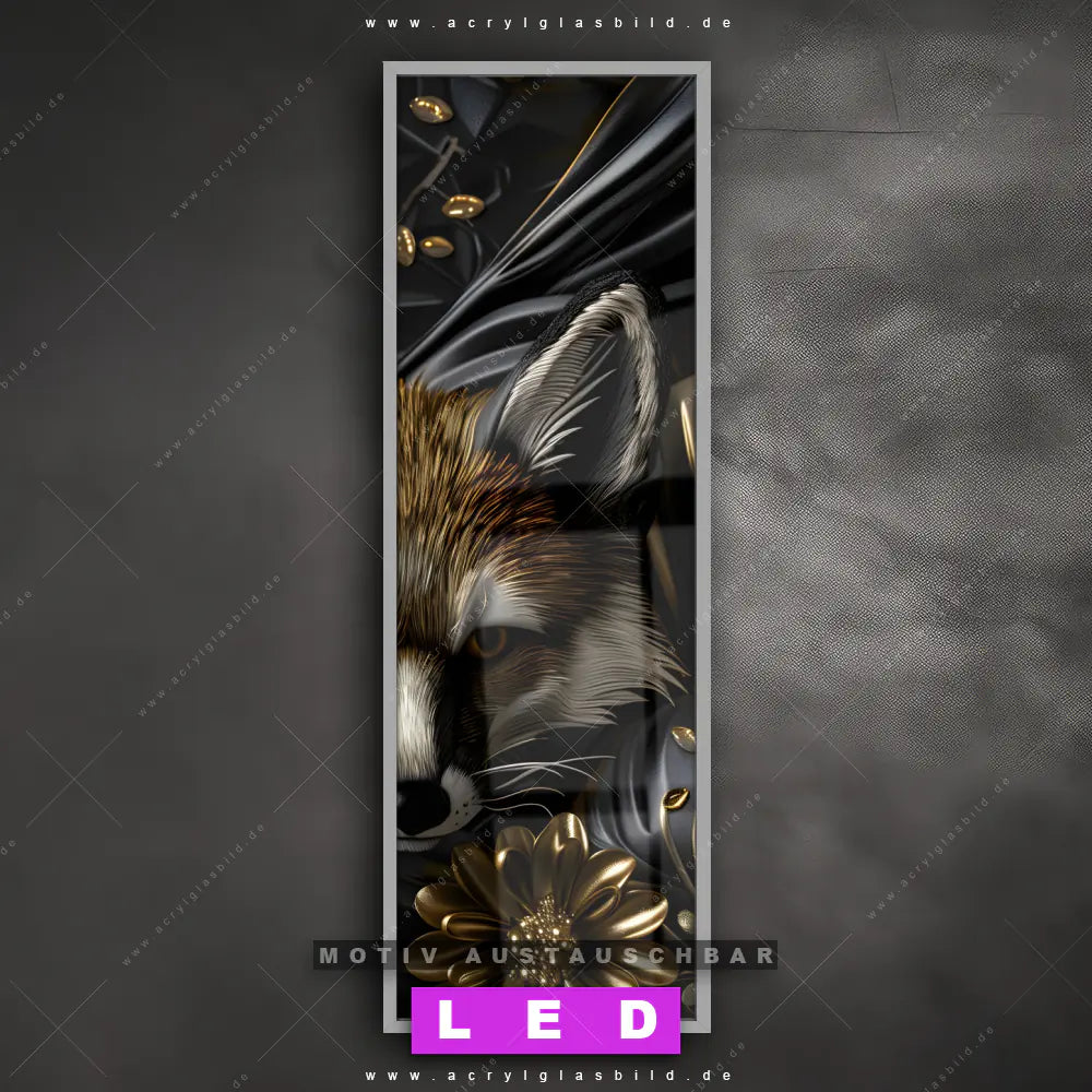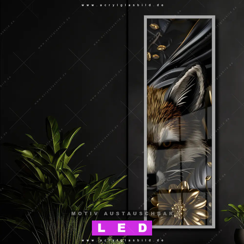 LED Acrylglasbild Canvalight® DIA | Luxuriöser Fuchs mit Blumen | Schmal