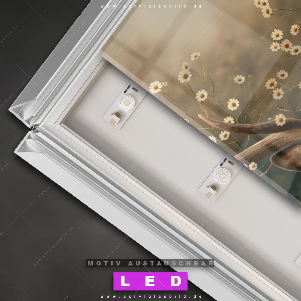 Na, worauf wartest du noch? Mach deine Wände zum Star der Show und bestelle jetzt das Canvalight® DIA LED Acrylglasbild Naturkunst: Rothirsch und Ganseblümchen. Deine Wände werden es dir danken und deine Freunde werden dank der wechselbaren Motive vor Neid platzen!
