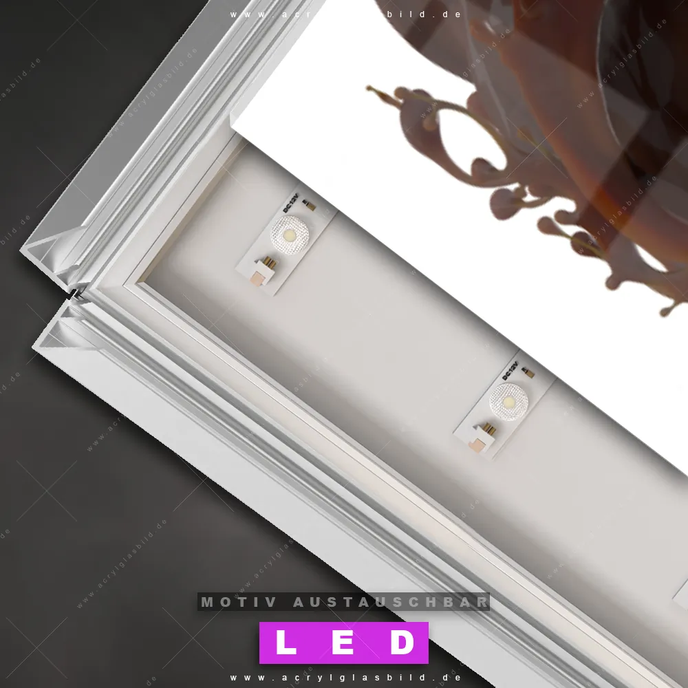 Also, warum noch zögern? Mach deine Wände mit einem Leuchtbild zum absoluten Hingucker und bestelle jetzt das Canvalight® DIA LED Acrylglasbild fließende Milch & fließender Kaffee. Deine Wände werden leuchten, und deine Freunde werden dank der wechselbaren Motive beeindruckt sein!