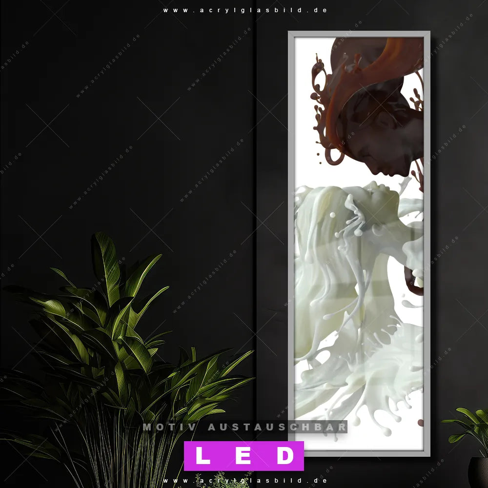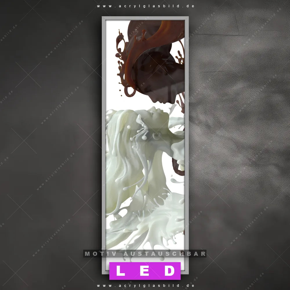 Bist du bereit, deine Wände mit einem dimmbaren LED Bild mit Fernbedienung und optionaler Farbtemperatursteuerung auf das nächste Level zu bringen? Unser Essen - Trinken Canvalight® DIA LED Acrylglasbild ist genau das, was du brauchst! Das Wandbild mit LED Beleuchtung im Schmalen Format mit austauschbarer bedruckter Acrylglas-Scheibe Milch küsst Schokolade bringt Licht und Stil in dein Zuhause – und das in null Komma nichts!