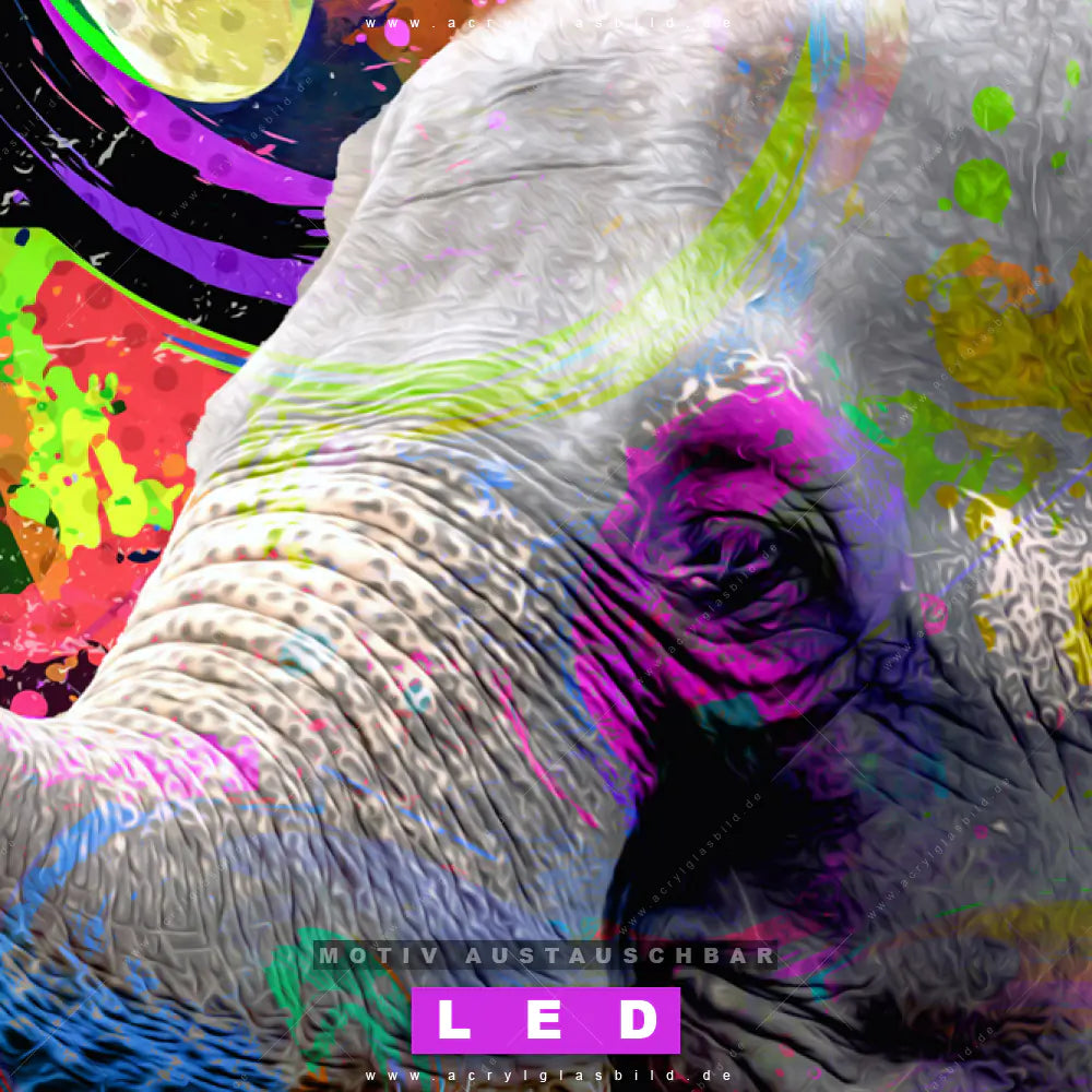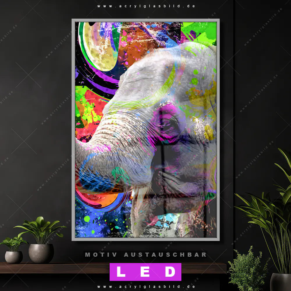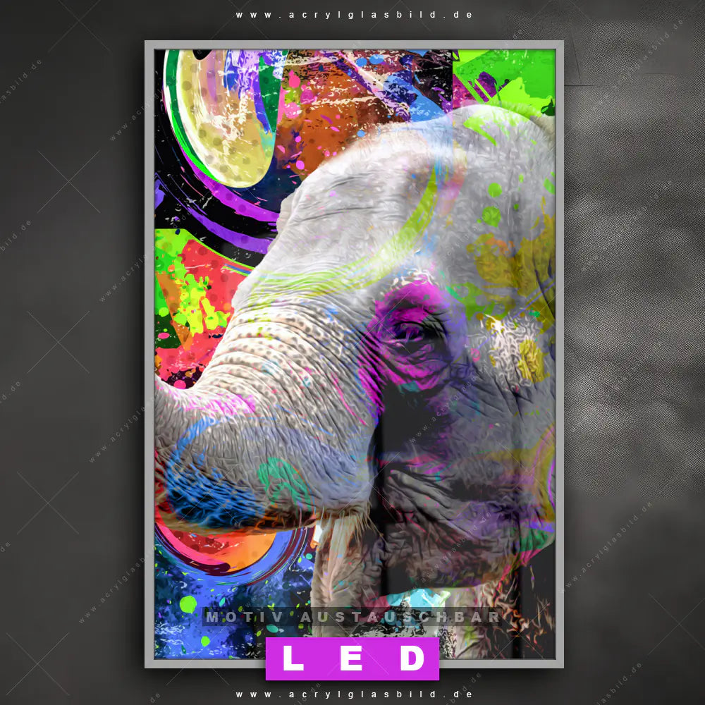 LED Acrylglasbild Canvalight® DIA | Moderner bunter Elefant No. 2 | Hochformat
