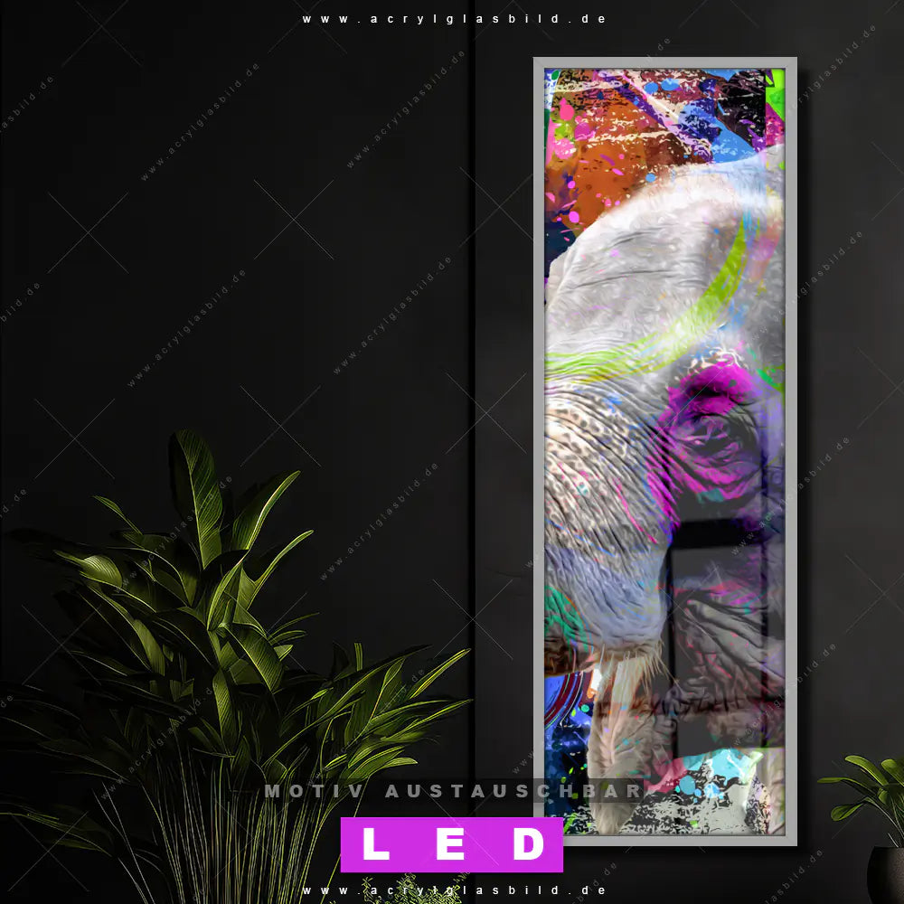 LED Acrylglasbild Canvalight® DIA | Moderner bunter Elefant No. 2 | Schmal