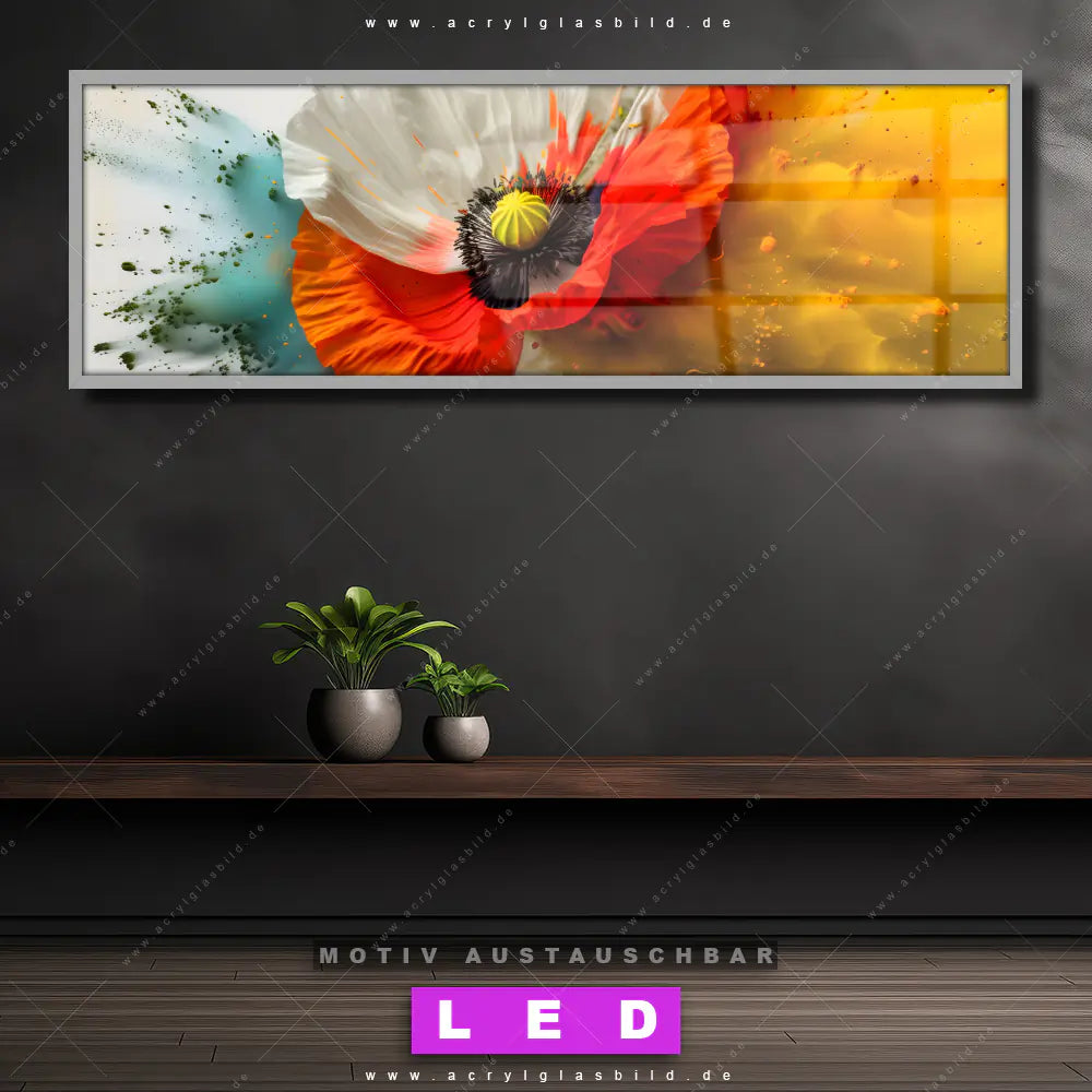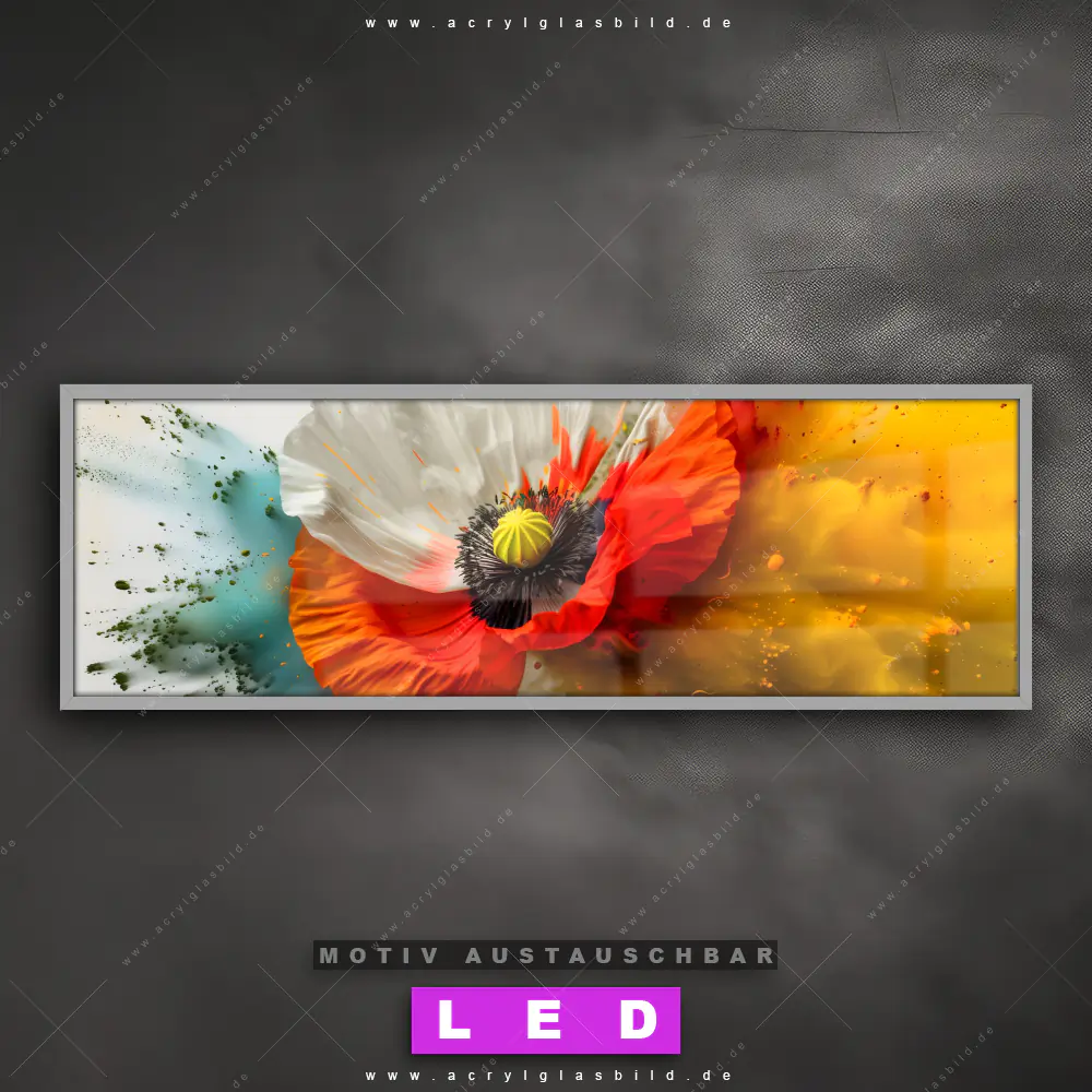 LED Acrylglasbild Canvalight® DIA | Mohnblume im Farbnebel | Panorama