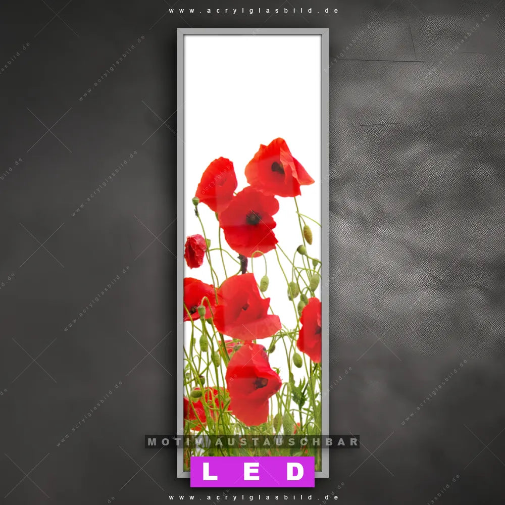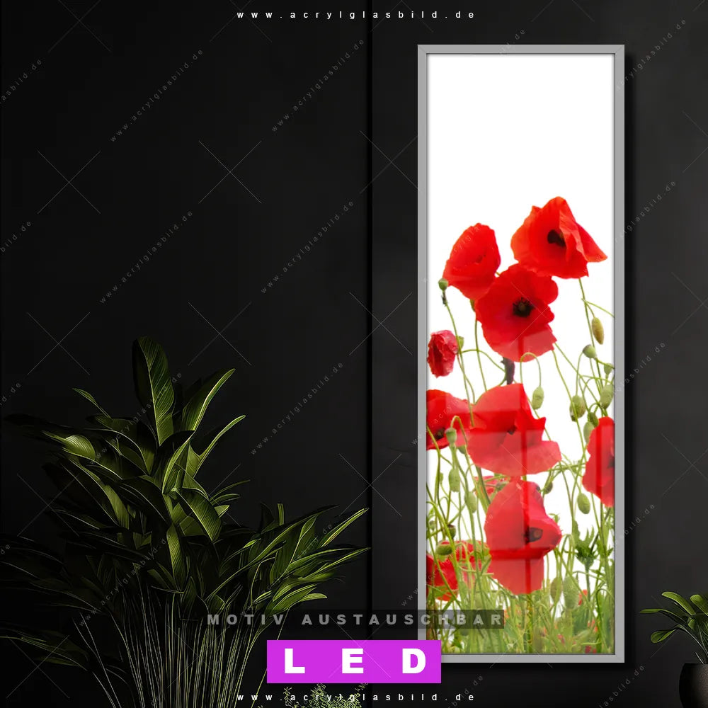 Bist du bereit, deine Wände mit einem dimmbaren LED Bild mit Fernbedienung und optionaler Farbtemperatursteuerung auf das nächste Level zu bringen? Unser Landschaften, Blumen - Botanik Canvalight® DIA LED Acrylglasbild ist genau das, was du brauchst! Das Wandbild mit LED Beleuchtung im Schmalen Format mit austauschbarer bedruckter Acrylglas-Scheibe Mohnfeld bringt Licht und Stil in dein Zuhause – und das in null Komma nichts!