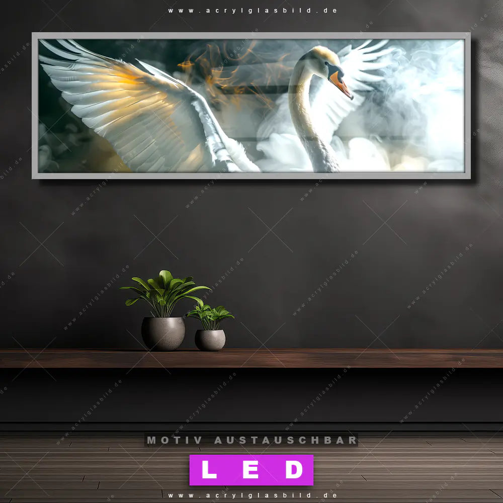 LED Acrylglasbild Canvalight® DIA | Mystischer Schwan im Nebel | Panorama