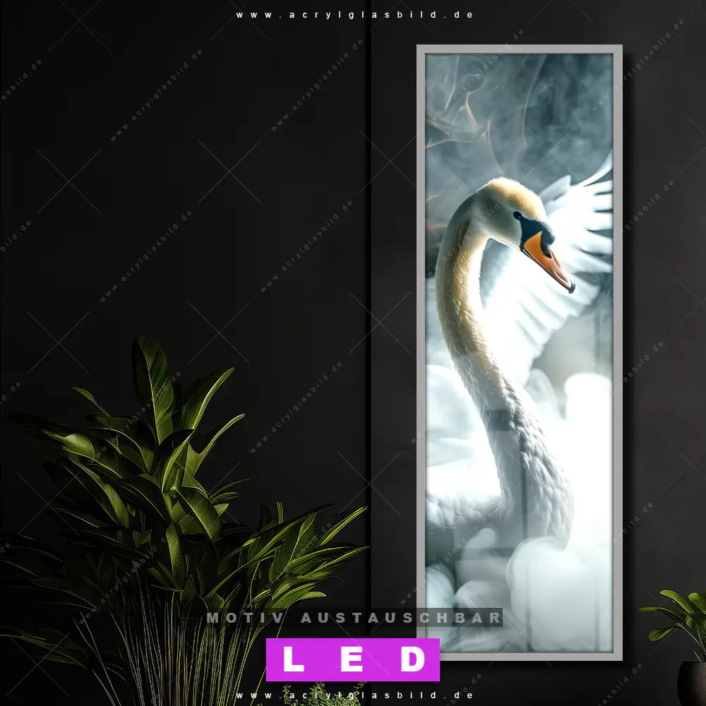 LED Acrylglasbild Canvalight® DIA | Mystischer Schwan im Nebel | Schmal