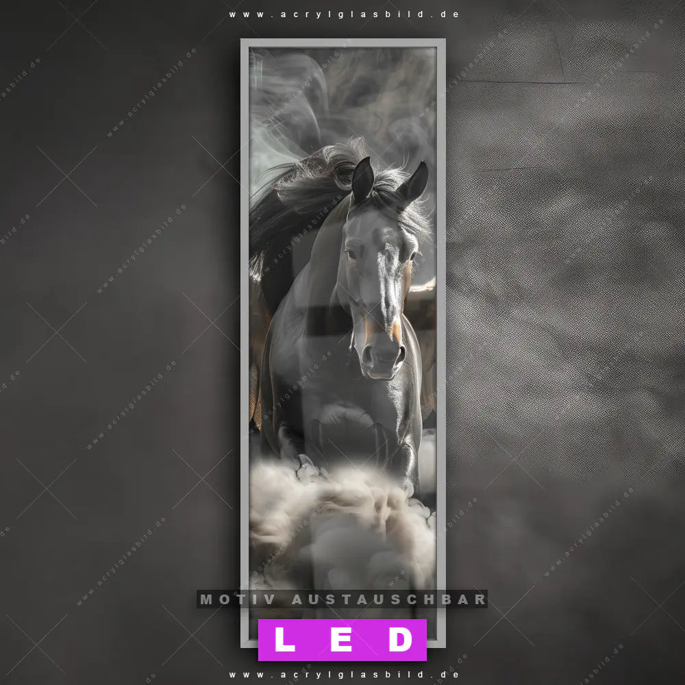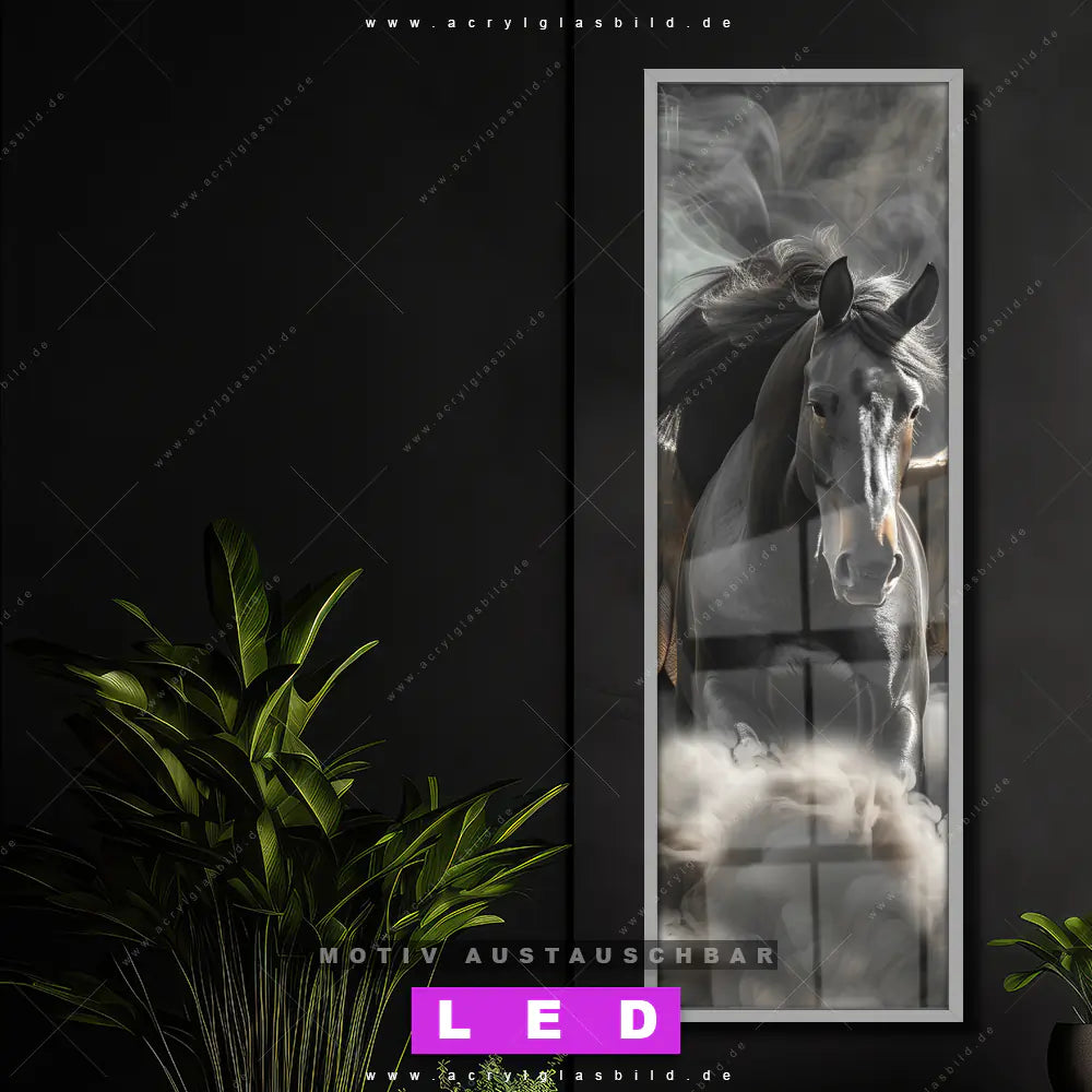Bist du bereit, deine Wände mit einem dimmbaren LED Bild mit Fernbedienung und optionaler Farbtemperatursteuerung auf das nächste Level zu bringen? Unser Tierwelt Canvalight® DIA LED Acrylglasbild ist genau das, was du brauchst! Das Wandbild mit LED Beleuchtung im Schmalen Format mit austauschbarer bedruckter Acrylglas-Scheibe Mystisches Pferd mit Flügeln bringt Licht und Stil in dein Zuhause – und das in null Komma nichts!