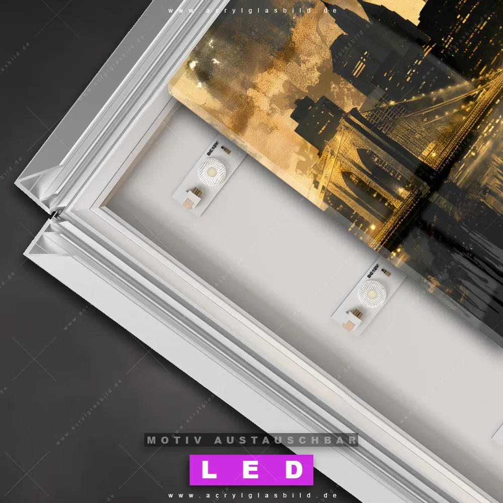 Also, worauf wartest du noch? Gib mit einem beleuchteten Wandbild mit wechselbarer Acrylglas-Scheibe deinen Wänden das gewisse Etwas und bestelle jetzt das LED Acrylglasbild Canvalight® DIA Brücke zur Stadtpracht – dein Zuhause wird es dir danken und deine Freunde werden dank der wechselbaren Motive erblassen!