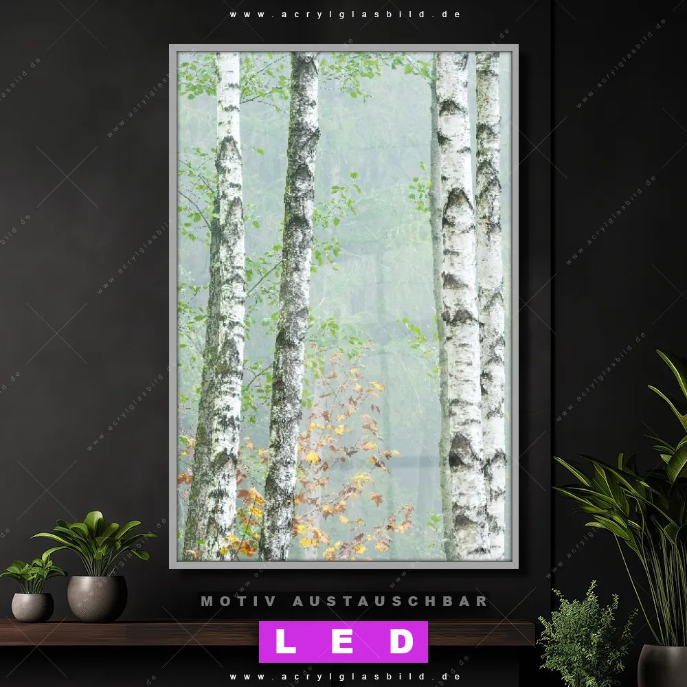 Du suchst nach einem Wandbild mit LED Beleuchtung als ultimativen Hingucker für deine Wände? Dann haben wir das perfekte dimmbare LED Bild mit Fernbedienung und optionaler Farbtemperatursteuerung für dich: unser abgefahrenes Wald - Bäume, Landschaften Canvalight® DIA LED Acrylglasbild! Mit dem LED Leuchtbild aus Acrylglas Nebliger Birkenwald im Hochformat mit austauschbarer bedruckter Acrylglas-Scheibe bringst du nicht nur Licht, sondern auch ordentlich Stil in deine Bude.