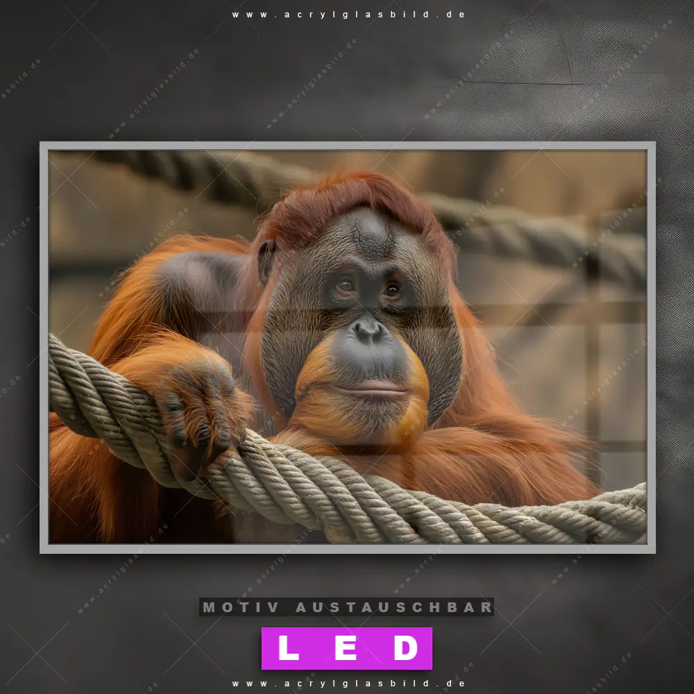 Du bist auf der Suche nach einem dimmbaren Tierwelt LED Bild mit Fernbedienung und optionaler Farbtemperatursteuerung? Dann haben wir hier genau das richtige Wandbild mit LED Beleuchtung für dich: Unser Canvalight® DIA LED Acrylglasbild Orang-Utan mit sanftem Blick im Querformat mit austauschbarer bedruckter Acrylglas-Scheibe. Dieses Leuchtbild bringt sofort Partybeleuchtung in deine Räume!