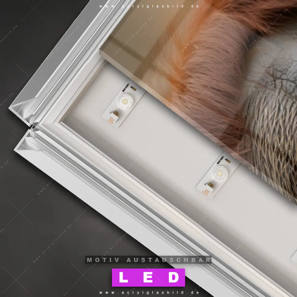 Bist du bereit, deine Wände mit einem dimmbaren LED Bild mit Fernbedienung und optionaler Farbtemperatursteuerung auf das nächste Level zu bringen? Unser Tierwelt Canvalight® DIA LED Acrylglasbild ist genau das, was du brauchst! Das Wandbild mit LED Beleuchtung im Schmalen Format mit austauschbarer bedruckter Acrylglas-Scheibe Orang-Utan mit sanftem Blick bringt Licht und Stil in dein Zuhause – und das in null Komma nichts!