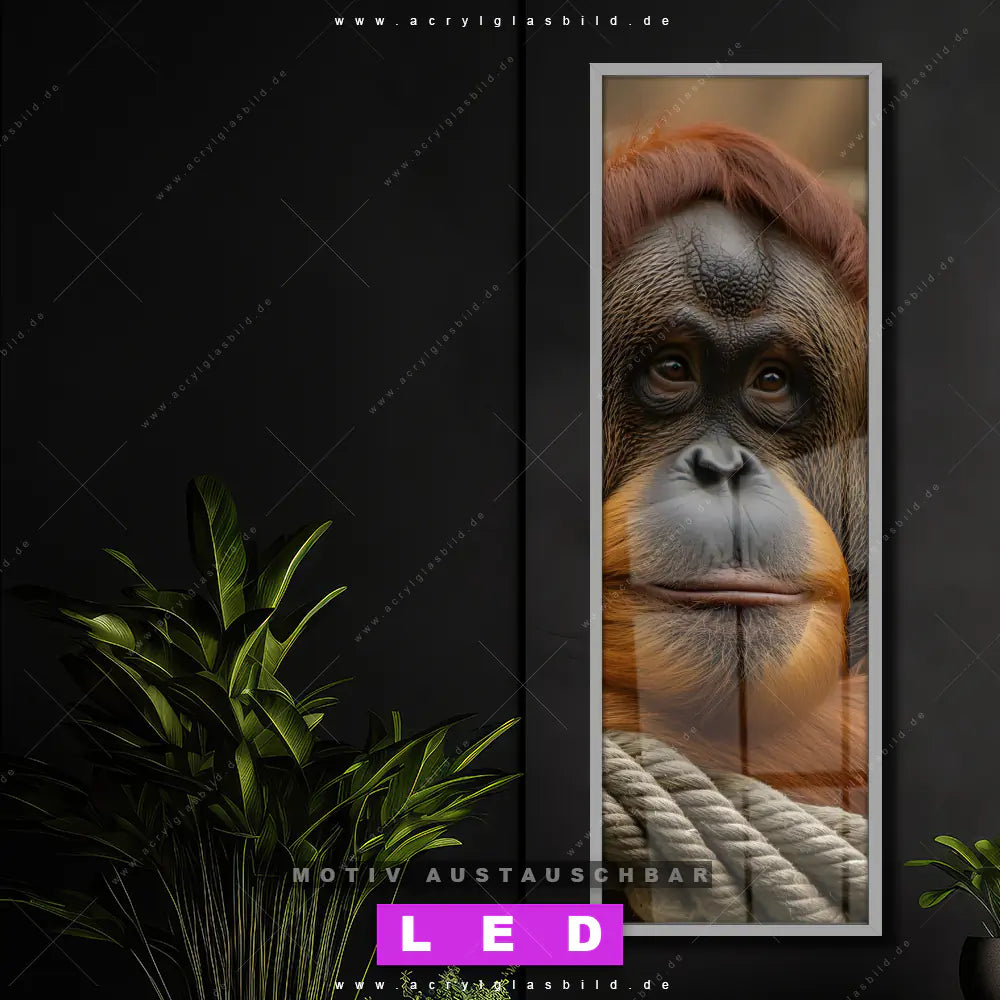 LED Acrylglasbild Canvalight® DIA | Orang-Utan mit sanftem Blick | Schmal