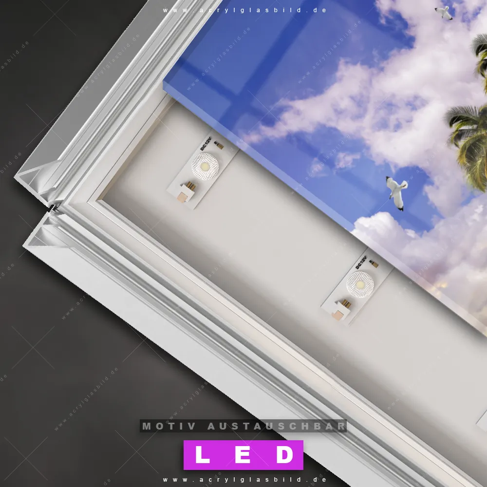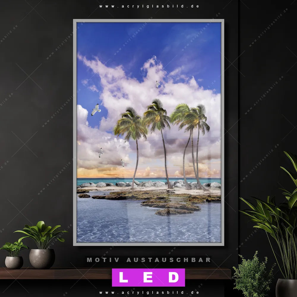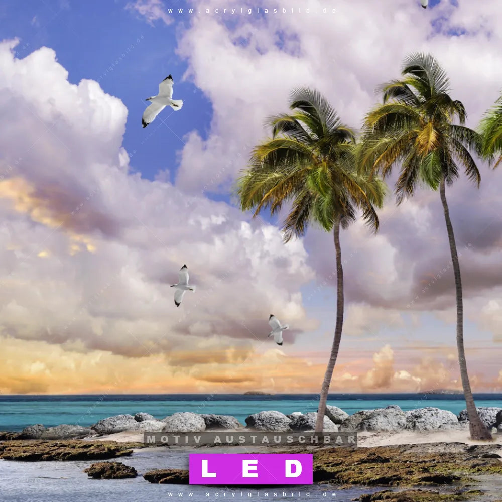 Na, worauf wartest du noch? Mach deine Wände zum Star der Show und bestelle jetzt das Canvalight® DIA LED Acrylglasbild Palmen und Möwen am Meer. Deine Wände werden es dir danken und deine Freunde werden dank der wechselbaren Motive vor Neid platzen!