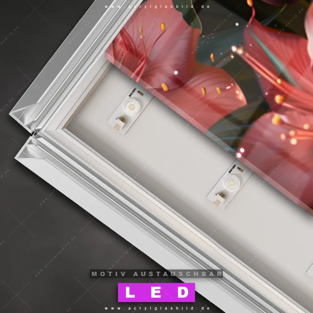 Deine Wände könnten dringend ein dimmbares LED Bild mit Fernbedienung und optionaler Farbtemperatursteuerung gebrauchen? Dann haben wir das perfekte Wandbild mit LED Beleuchtung für dich: unser mega-cooles Tierwelt, Blumen - Botanik Canvalight® DIA LED Acrylglasbild! Mit unserem angesagten Leuchtbild aus Acrylglas im Panorama-Format und der austauschbaren bedruckten Acrylglas-Scheibe Panther und rote Blüten bringst du nicht nur Licht, sondern auch jede Menge Flair in deine Räume.