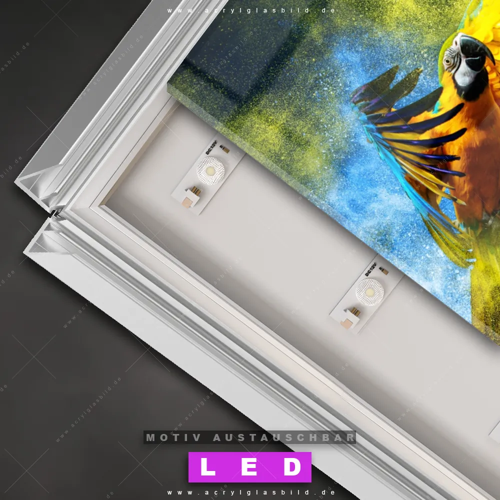 Na, worauf wartest du noch? Mach deine Wände zum Star der Show und bestelle jetzt das Canvalight® DIA LED Acrylglasbild Ara im Farbpuder. Deine Wände werden es dir danken und deine Freunde werden dank der wechselbaren Motive vor Neid platzen!