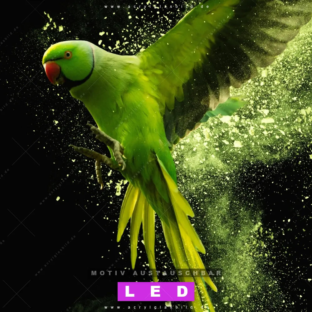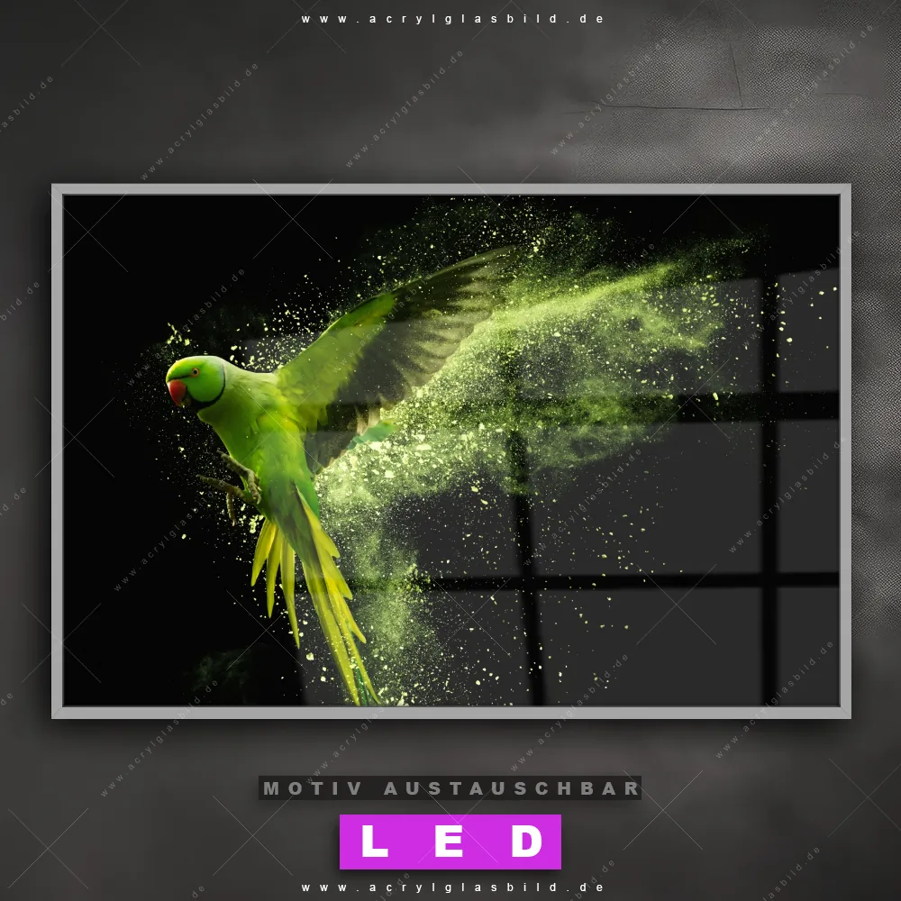 LED Acrylglasbild Canvalight® DIA | Papagei - grüne Farbexplosion | Querformat