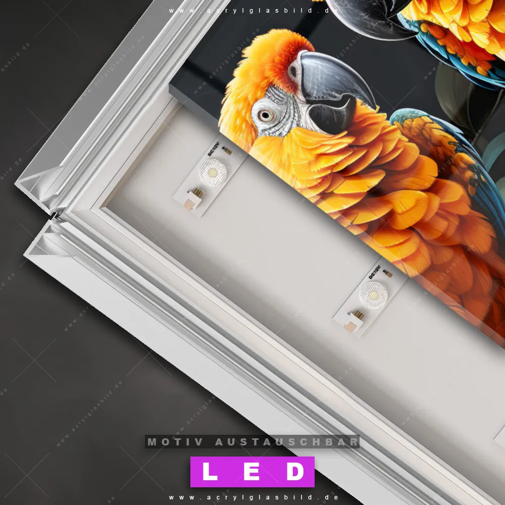 Na, worauf wartest du noch? Mach deine Wände zum Star der Show und bestelle jetzt das Canvalight® DIA LED Acrylglasbild Bunte Vögel im Regenwald. Deine Wände werden es dir danken und deine Freunde werden dank der wechselbaren Motive vor Neid platzen!