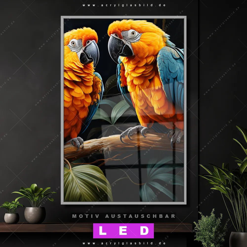 LED Acrylglasbild Canvalight® DIA | Papageien auf einem Ast | Hochformat