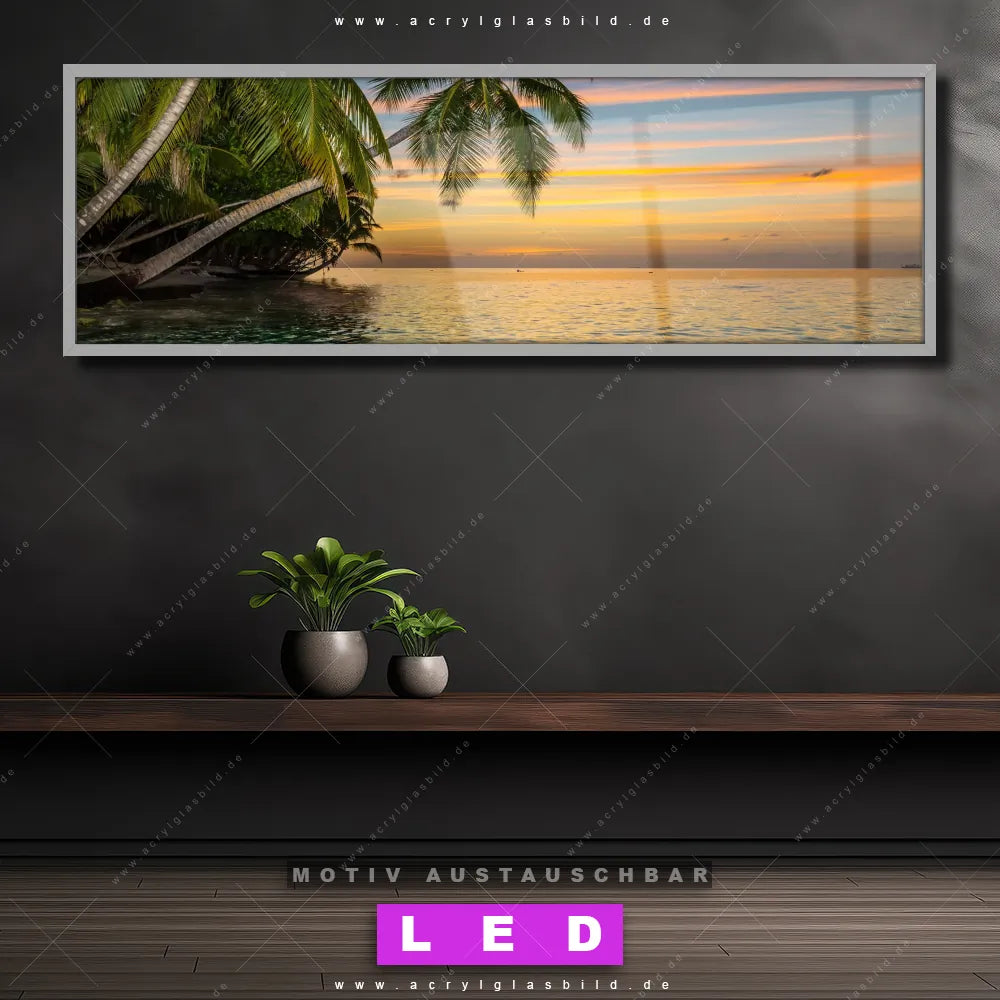 Also, worauf wartest du noch? Verwandle deine Wände mit einem LED Leuchtbild in wahre Kunstwerke und bestelle jetzt das Canvalight® DIA LED Acrylglasbild Karibische Palmen. Deine Wände werden strahlen, und deine Freunde werden dank der wechselbaren Motive staunen!