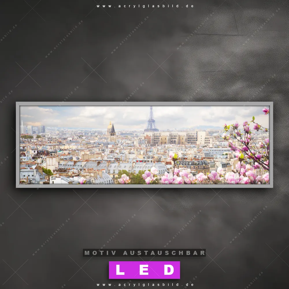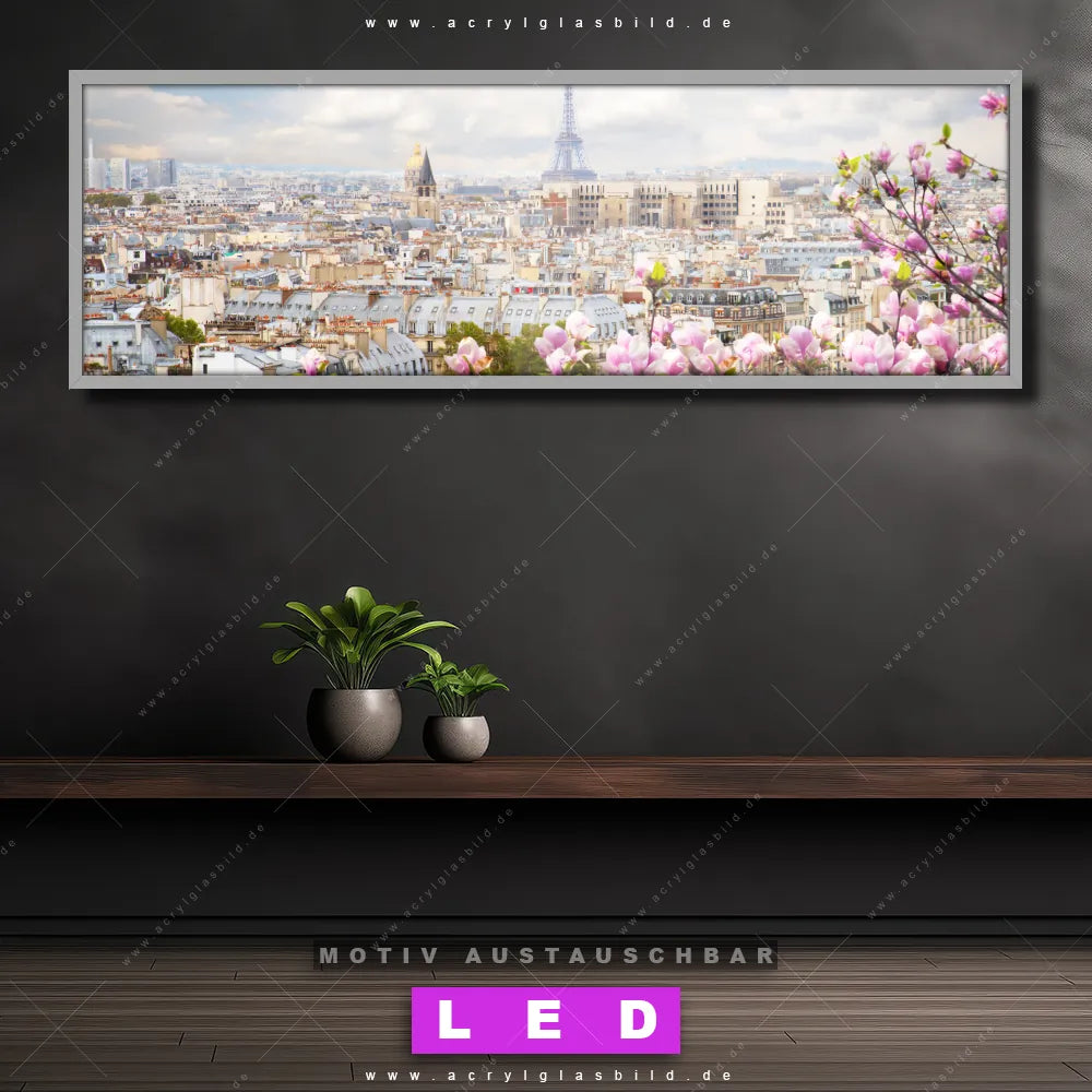 Begriffe wie Sehenswürdigkeiten, Frankreich, Paris, Eiffelturm, Skyline, Häuser, Frühling, Magnolie haben dich auf der Suche nach deinem neuen LED Wandbild aus Acrylglas inspiriert? Dann sollte das LED Acrylglasbild Magnolien in Paris den Weg zu dir finden.