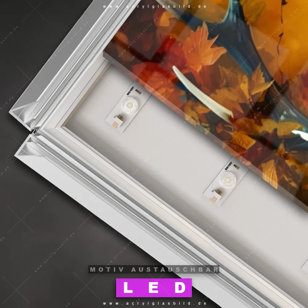 Bist du bereit, deine Wände mit einem dimmbaren LED Bild mit Fernbedienung und optionaler Farbtemperatursteuerung auf das nächste Level zu bringen? Unser Tierwelt Canvalight® DIA LED Acrylglasbild ist genau das, was du brauchst! Das Wandbild mit LED Beleuchtung im Schmalen Format mit austauschbarer bedruckter Acrylglas-Scheibe Rothirsch im Herbstwald bringt Licht und Stil in dein Zuhause – und das in null Komma nichts!