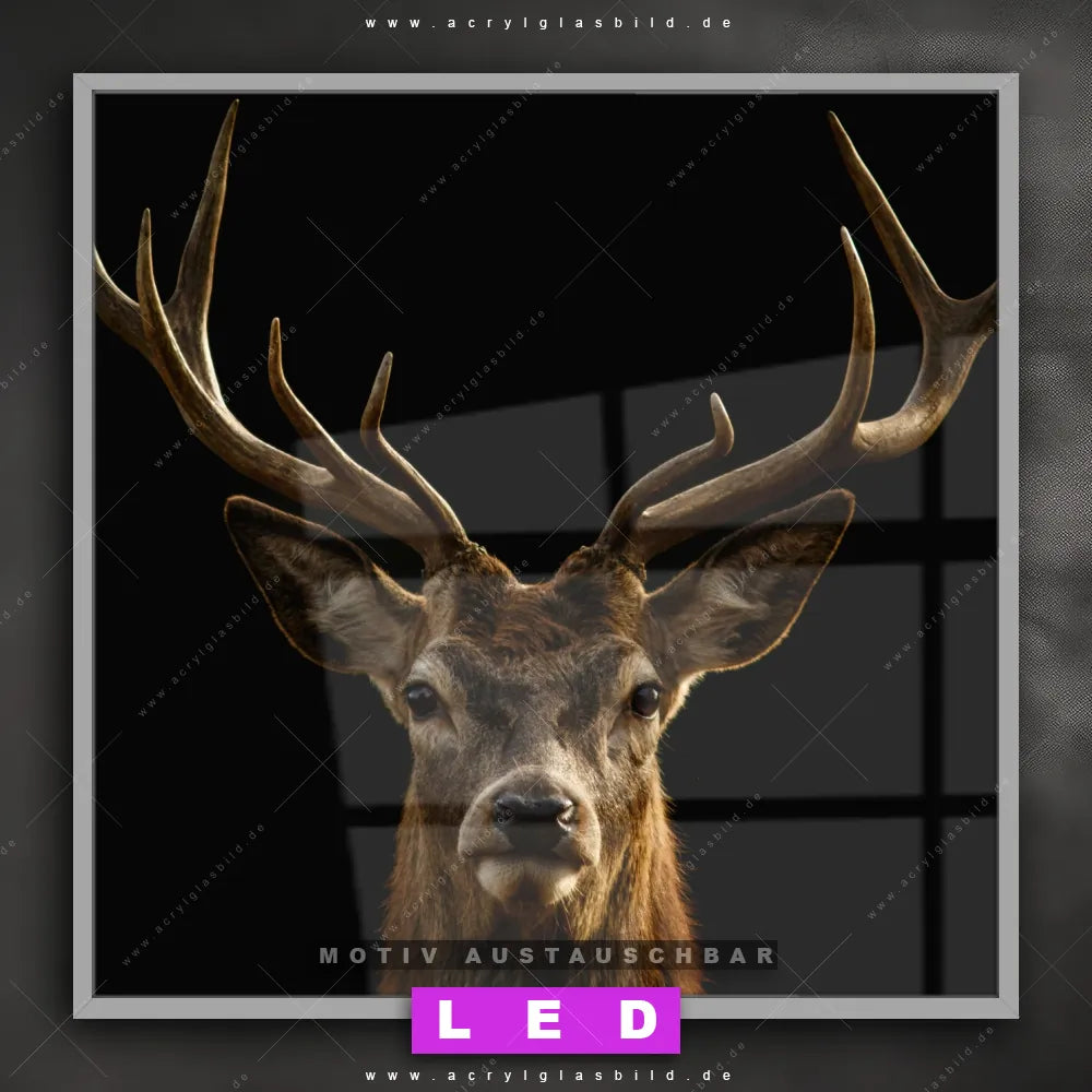 LED Acrylglasbild Canvalight® DIA | Rotwild Porträt | Quadrat
