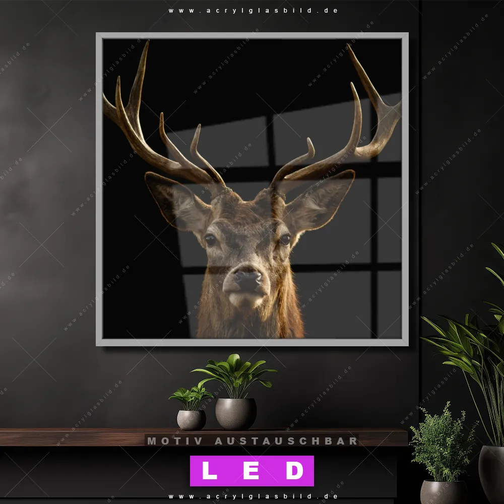 Bist du bereit, deine Wände mit einem dimmbaren LED Bild mit Fernbedienung und optionaler Farbtemperatursteuerung zum Leuchten zu bringen? Wir haben das ultimative Tierwelt LED Acrylglasbild Canvalight® DIA für dich! Unser LED Wandbild aus Acrylglas Rotwild Porträt im Quadratischen Format mit austauschbarer bedruckter Acrylglas-Scheibe im DIA-Klapprahmen bringt sofort jede Menge Glanz in deine vier Wände.