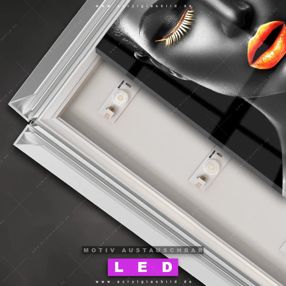 Bist du bereit, deine Wände mit einem dimmbaren LED Bild mit Fernbedienung und optionaler Farbtemperatursteuerung zum Leuchten zu bringen? Wir haben das ultimative Porträts - Menschen LED Acrylglasbild Canvalight® DIA für dich! Unser LED Wandbild aus Acrylglas Schönheit in Schwarz im Quadratischen Format mit austauschbarer bedruckter Acrylglas-Scheibe im DIA-Klapprahmen bringt sofort jede Menge Glanz in deine vier Wände.