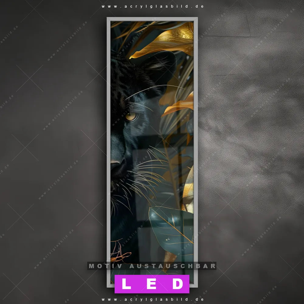 LED Acrylglasbild Canvalight® DIA | Schwarzer Panther im Dschungel | Schmal