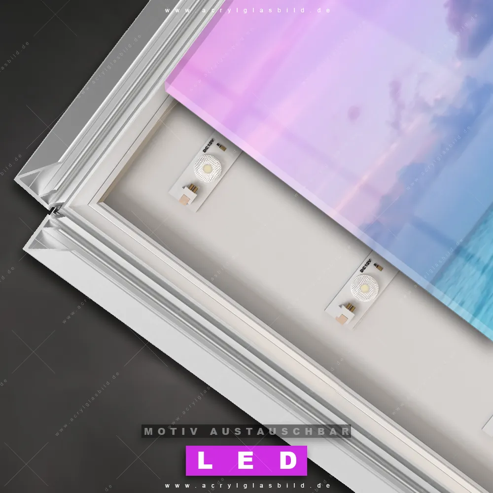 Also, worauf wartest du noch? Verwandle deine Wände mit einem LED Leuchtbild in wahre Kunstwerke und bestelle jetzt das Canvalight® DIA LED Acrylglasbild Sonnenuntergang über dem türkisblauen Meer. Deine Wände werden strahlen, und deine Freunde werden dank der wechselbaren Motive staunen!