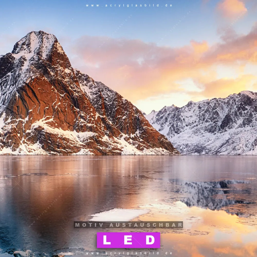 Vergiss dunkle Ecken und langweilige Wände in Arzt - Praxis, Büro - Kanzlei, Wohnzimmer - Schlafzimmer! Mit unserem LED Acrylglasbild Canvalight® DIA Winterlandschaft wirst du nie wieder im Dunkeln tappen. Suchst du nach einem beleuchteten Wandbild mit Landschaft, Natur, Stille, See, Wasser, Berge, Gebirge, Polarlicht, Norwegen, Island, Skandinavien, Schweden, Finnland, Spiegelung? Dann ist unser Leuchtbild gefrorener See an den Bergen mit den strahlenden Motiv-Farben Braun, Blau, Orange genau das richtige LED Bild für dich. Egal, ob dein Stil minimalistisch oder exotisch ist, dieses LED Leuchtbild im Natürlich - Realistisch, Mixed Media Stil mit DIA-Klapprahmen und glänzender Front aus Acrylglas passt perfekt zu jeder Einrichtung.