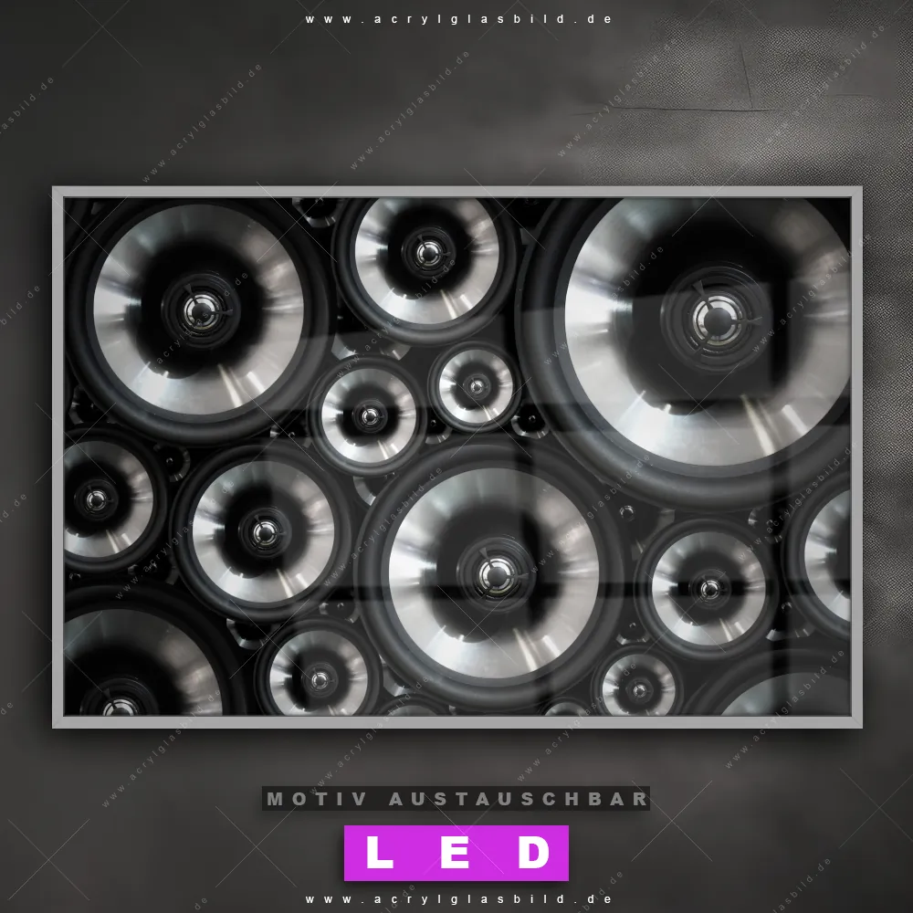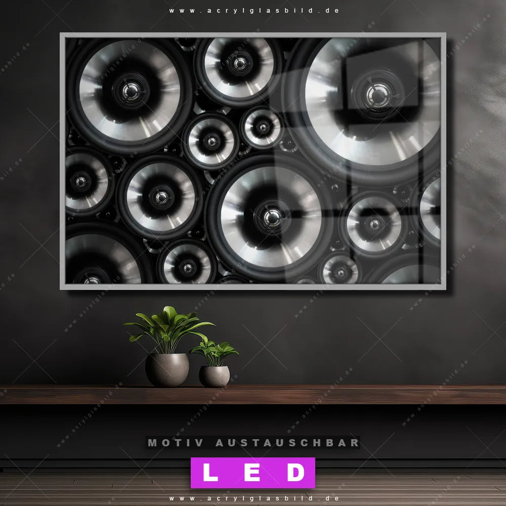 Begriffe wie Musik, musikalisch, Lautsprecher, Verstärker haben dich auf der Suche nach deinem neuen LED Wandbild aus Acrylglas inspiriert? Dann sollte das LED Acrylglasbild Bassbox Musikboxen den Weg zu dir finden.
