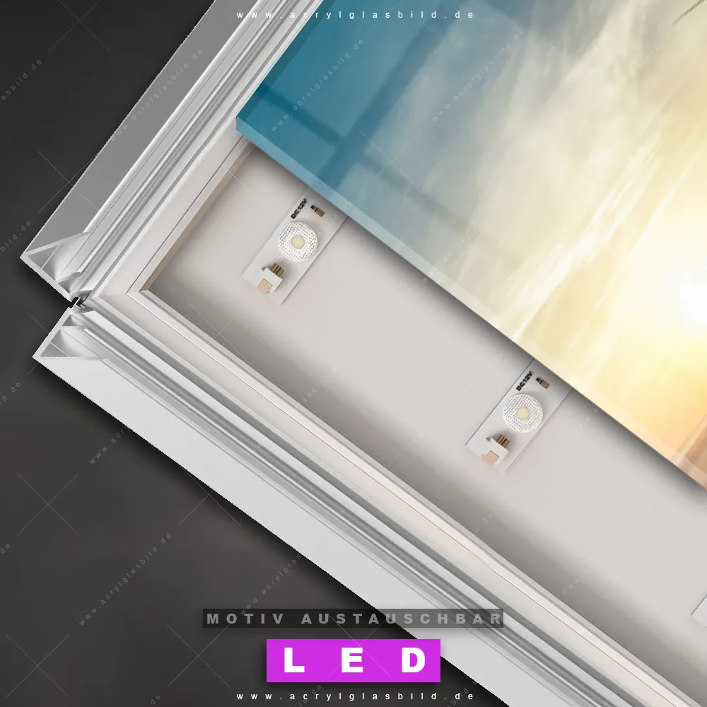 Also, warum noch zögern? Mach deine Wände mit einem Leuchtbild zum absoluten Hingucker und bestelle jetzt das Canvalight® DIA LED Acrylglasbild Küste am Meer. Deine Wände werden leuchten, und deine Freunde werden dank der wechselbaren Motive beeindruckt sein!