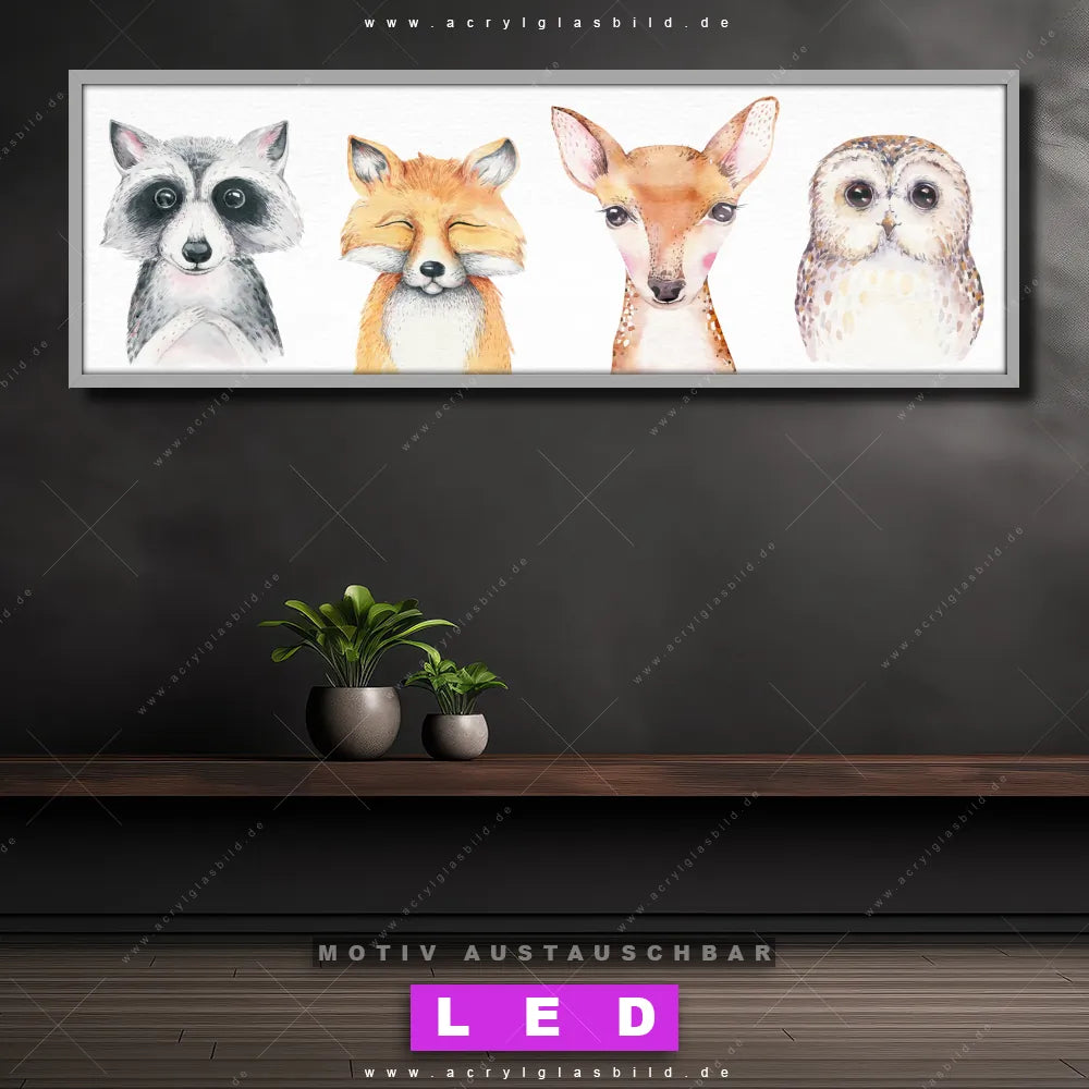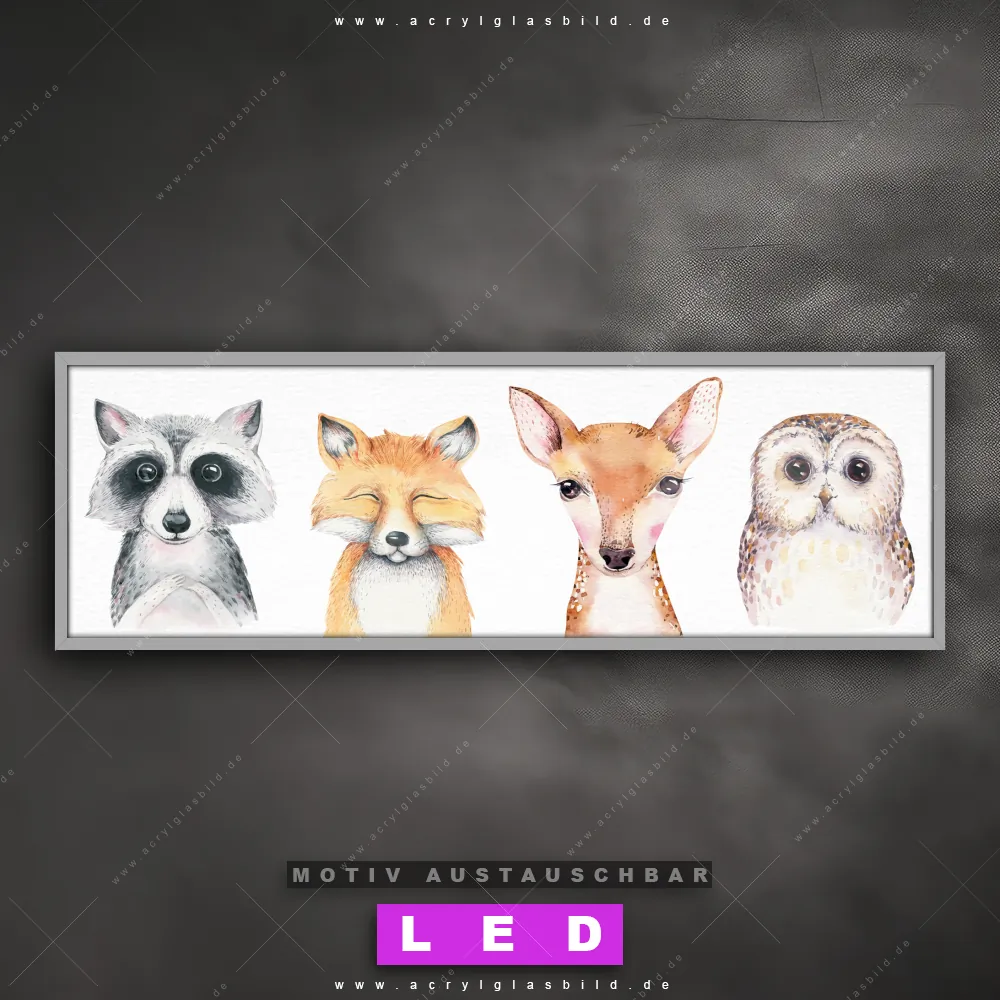Also, worauf wartest du noch? Verwandle deine Wände mit einem LED Leuchtbild in wahre Kunstwerke und bestelle jetzt das Canvalight® DIA LED Acrylglasbild Waschbär, Fuchs, Reh & Eule. Deine Wände werden strahlen, und deine Freunde werden dank der wechselbaren Motive staunen!