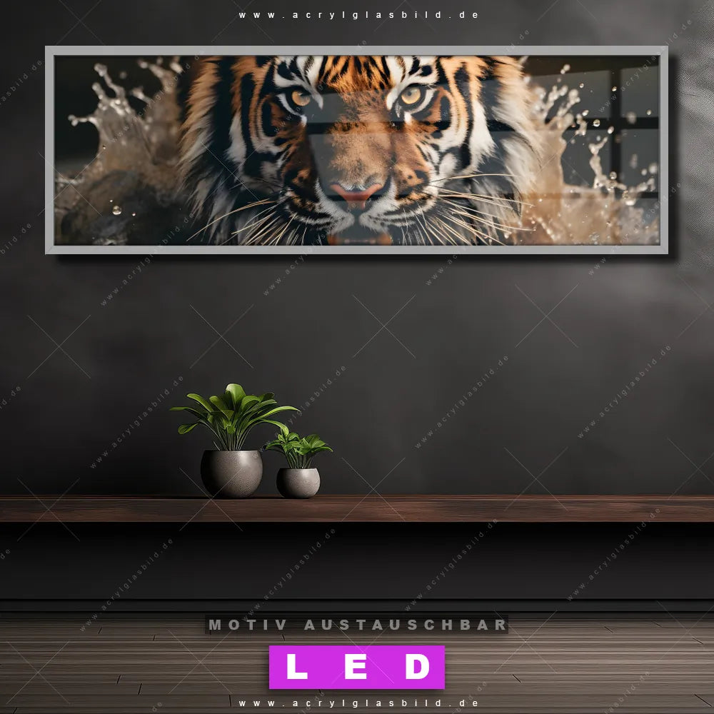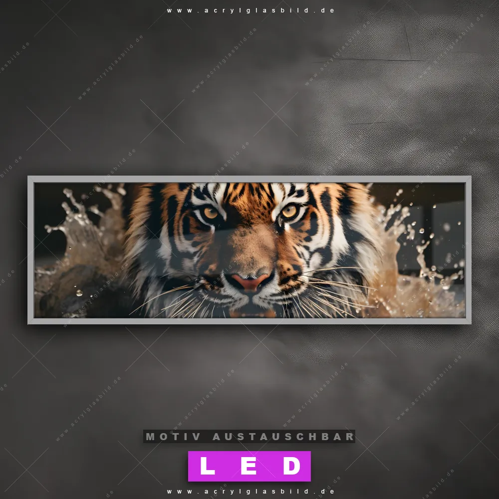 LED Acrylglasbild Canvalight® DIA | Tiger im Wasser | Panorama
