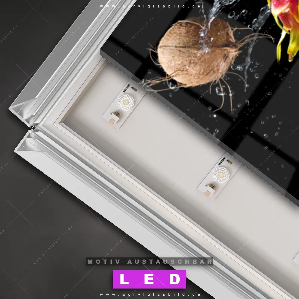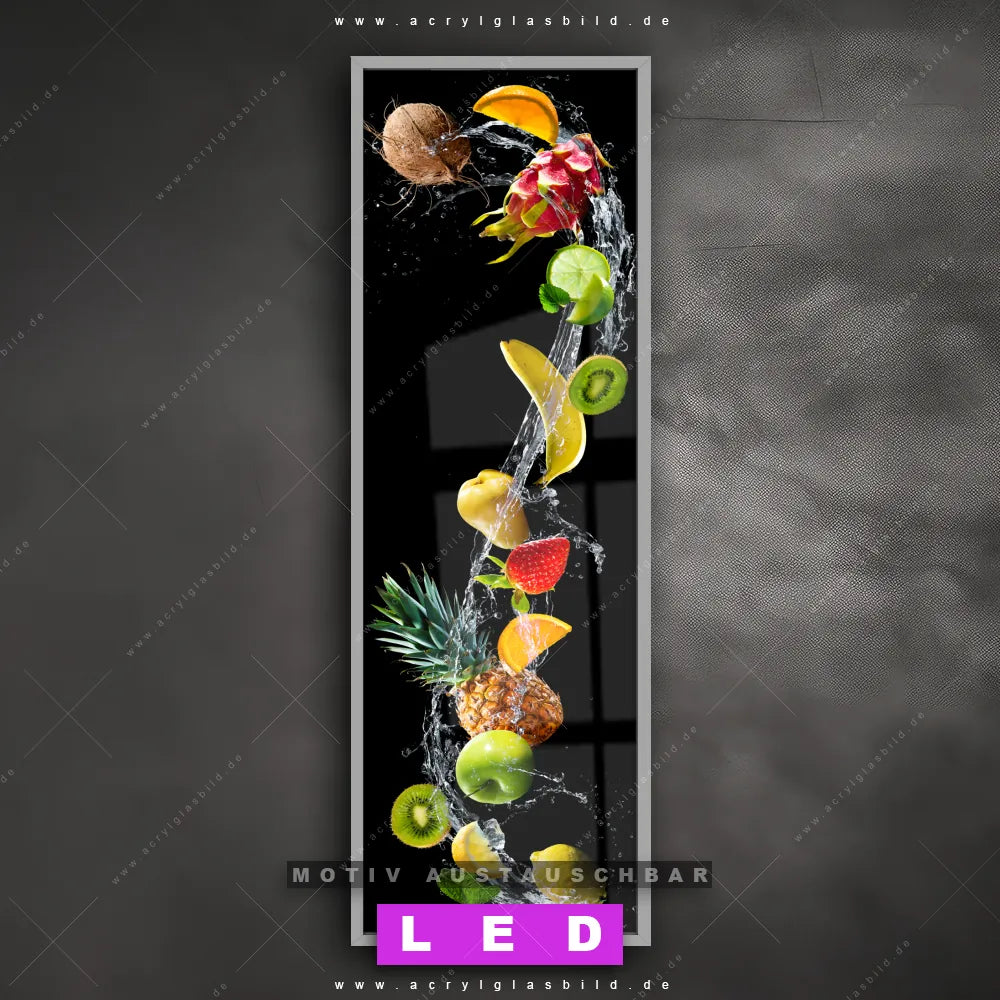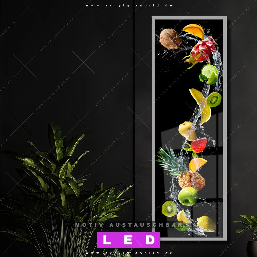 Bist du bereit, deine Wände mit einem dimmbaren LED Bild mit Fernbedienung und optionaler Farbtemperatursteuerung auf das nächste Level zu bringen? Unser Essen - Trinken Canvalight® DIA LED Acrylglasbild ist genau das, was du brauchst! Das Wandbild mit LED Beleuchtung im Schmalen Format mit austauschbarer bedruckter Acrylglas-Scheibe Viele Früchte bringt Licht und Stil in dein Zuhause – und das in null Komma nichts!