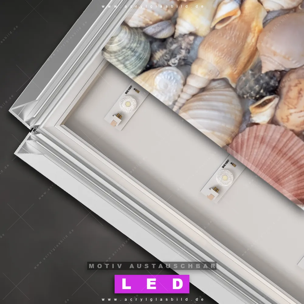 Also, worauf wartest du noch? Verwandle deine Wände mit einem LED Leuchtbild in wahre Kunstwerke und bestelle jetzt das Canvalight® DIA LED Acrylglasbild Muscheldecke. Deine Wände werden strahlen, und deine Freunde werden dank der wechselbaren Motive staunen!