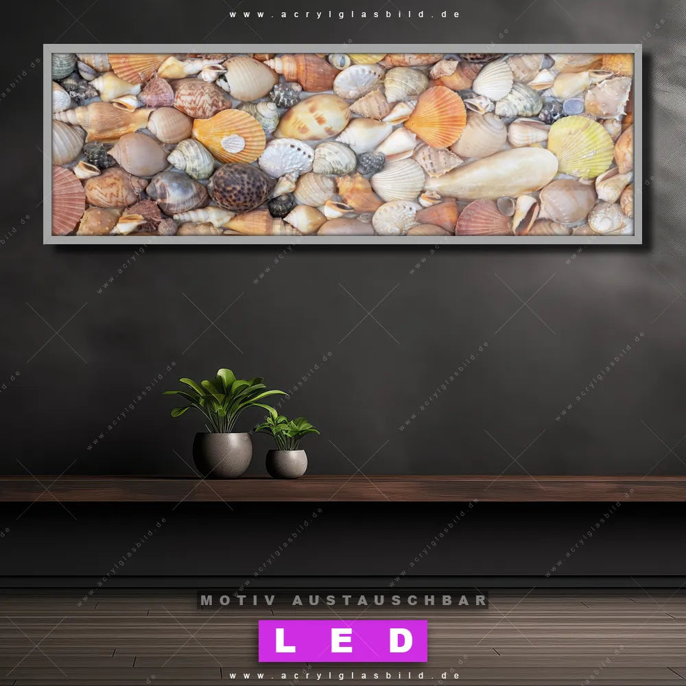 Deine Wände könnten dringend ein dimmbares LED Bild mit Fernbedienung und optionaler Farbtemperatursteuerung gebrauchen? Dann haben wir das perfekte Wandbild mit LED Beleuchtung für dich: unser mega-cooles Strand - Meer, Muster - Texturen Canvalight® DIA LED Acrylglasbild! Mit unserem angesagten Leuchtbild aus Acrylglas im Panorama-Format und der austauschbaren bedruckten Acrylglas-Scheibe Viele Muscheln bringst du nicht nur Licht, sondern auch jede Menge Flair in deine Räume.