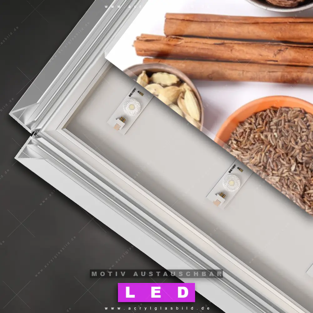 Also, warum noch zögern? Mach deine Wände mit einem Leuchtbild zum absoluten Hingucker und bestelle jetzt das Canvalight® DIA LED Acrylglasbild Natürliche Aromen - Gewürze. Deine Wände werden leuchten, und deine Freunde werden dank der wechselbaren Motive beeindruckt sein!