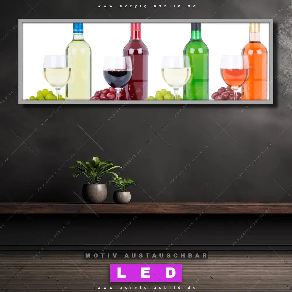 LED Acrylglasbild Canvalight® DIA | Wein in Flaschen und Gläsern | Panorama