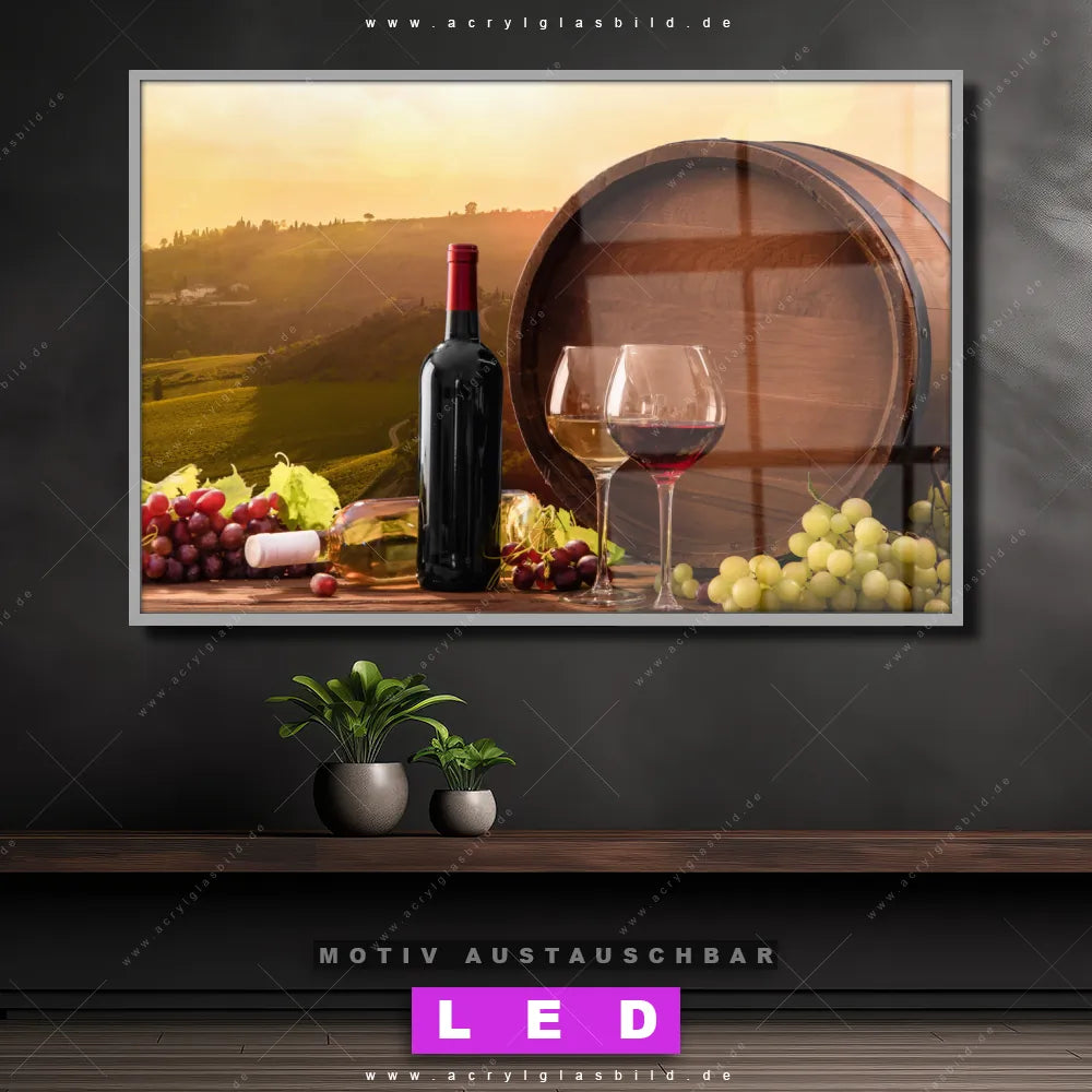 Mit unserem LED Acrylglasbild Canvalight® DIA Weinflasche mit Trauben und Fass und seiner genialen LED-Ausleuchtung wirst du nie wieder im Dunkeln auf deinem Sofa herumtappen. Wenn du nach einem beleuchteten Wandbild aus Acrylglas mit Küche, Wein, Gläser, genießen, Alkohol, Rotwein, Trauben, Toscana, Berge, Obst, Weinfass, Fass für Bar - Gastronomie, Küche - Esszimmer suchst, ist unser LED Leuchtbild Weinflasche im toscanischen Sonnenuntergang in den beeindruckenden Motiv-Farben Braun, Beige genau das richtige beleuchtete Wandbild für dich. Gestaltet im Natürlich - Realistisch, Retro - Vintage Stil, passt dieses LED Wandbild mit DIA-Klapprahmen und glänzender Front aus Acrylglas perfekt zu jedem Einrichtungsstil – sogar zu deinem chaotischen kreativen Durcheinander!