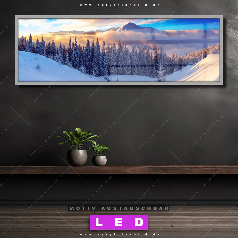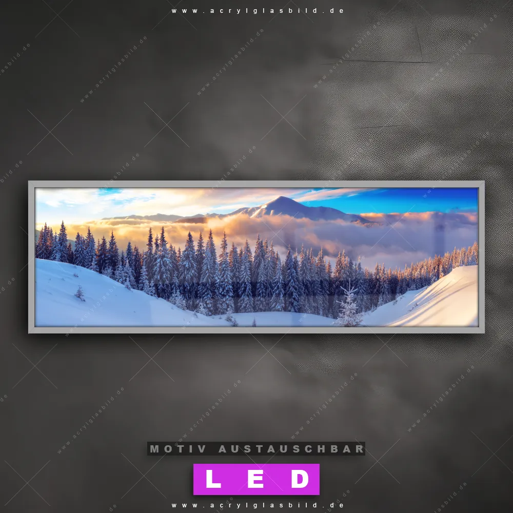 LED Acrylglasbild Canvalight® DIA | Winterliches Gebirge | Panorama