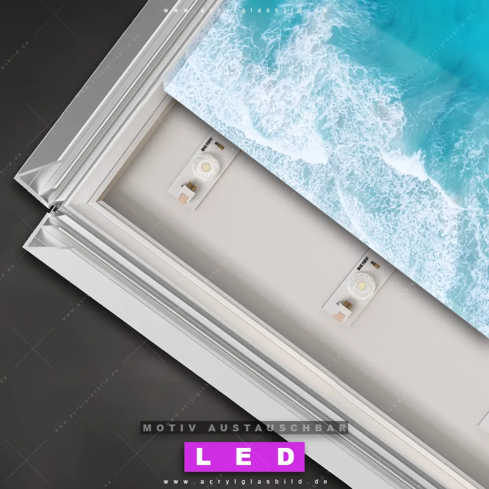 Also, worauf wartest du noch? Gib mit einem beleuchteten Wandbild mit wechselbarer Acrylglas-Scheibe deinen Wänden das gewisse Etwas und bestelle jetzt das LED Acrylglasbild Canvalight® DIA Segelboot vor weißem Sandstrand – dein Zuhause wird es dir danken und deine Freunde werden dank der wechselbaren Motive erblassen!