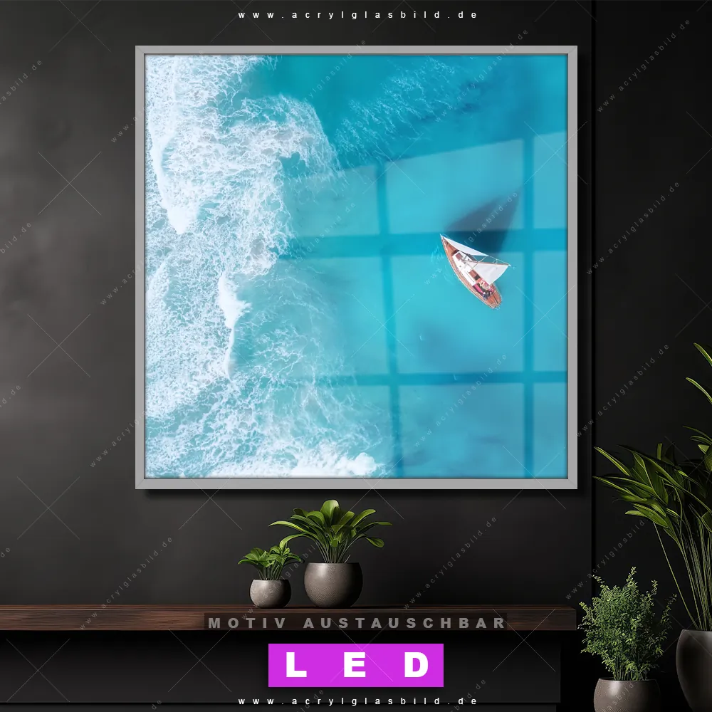 Bist du bereit, deine Wände mit einem dimmbaren LED Bild mit Fernbedienung und optionaler Farbtemperatursteuerung zum Leuchten zu bringen? Wir haben das ultimative Strand - Meer LED Acrylglasbild Canvalight® DIA für dich! Unser LED Wandbild aus Acrylglas Yacht im Meer im Quadratischen Format mit austauschbarer bedruckter Acrylglas-Scheibe im DIA-Klapprahmen bringt sofort jede Menge Glanz in deine vier Wände.