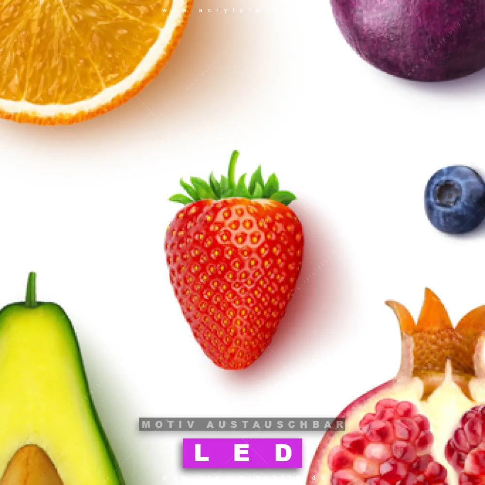 Bist du bereit, deine Wände mit einem dimmbaren LED Bild mit Fernbedienung und optionaler Farbtemperatursteuerung auf das nächste Level zu bringen? Unser Essen - Trinken Canvalight® DIA LED Acrylglasbild ist genau das, was du brauchst! Das Wandbild mit LED Beleuchtung im Schmalen Format mit austauschbarer bedruckter Acrylglas-Scheibe Exotische Früchte bringt Licht und Stil in dein Zuhause – und das in null Komma nichts!