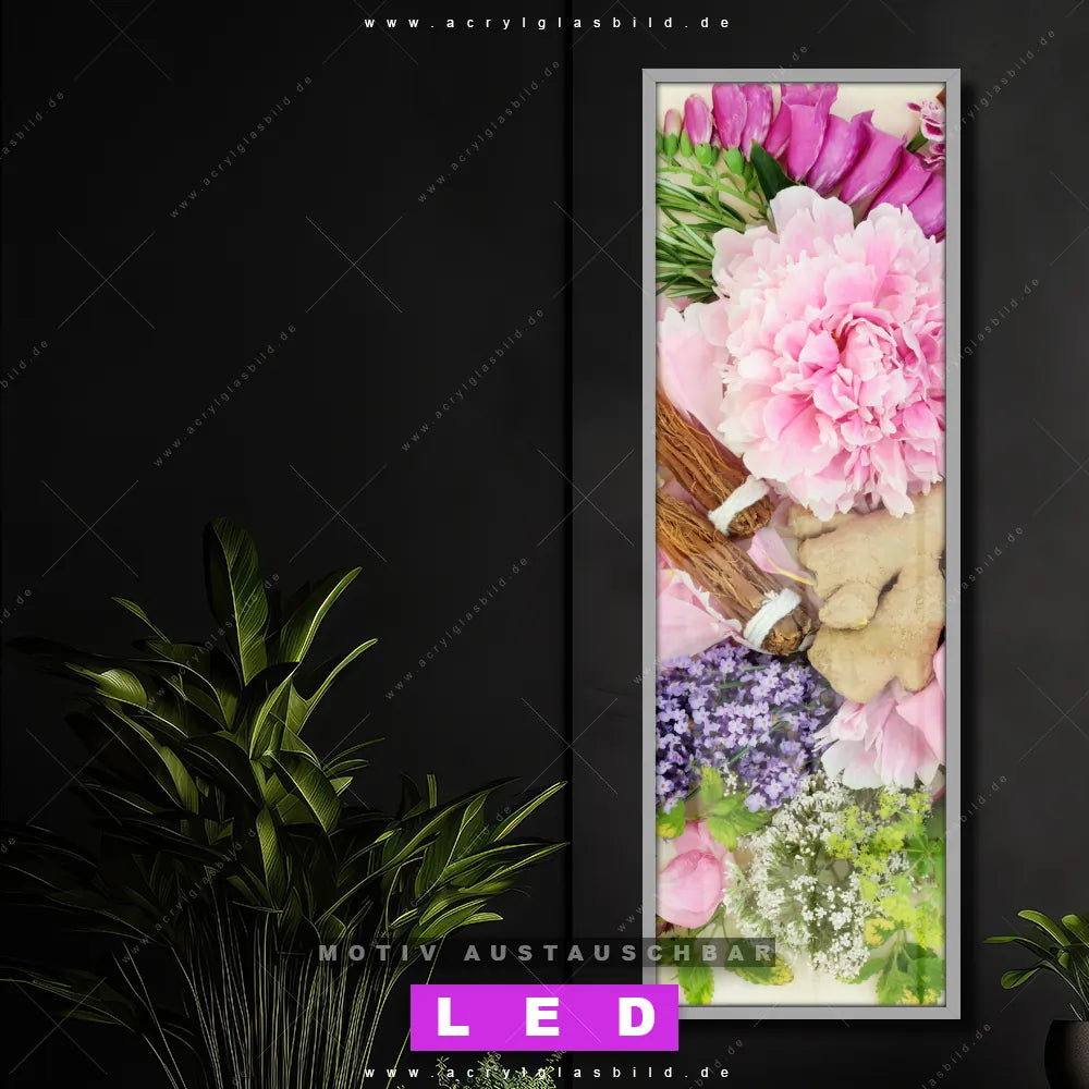 Bist du bereit, deine Wände mit einem dimmbaren LED Bild mit Fernbedienung und optionaler Farbtemperatursteuerung auf das nächste Level zu bringen? Unser Essen - Trinken, Blumen - Botanik Canvalight® DIA LED Acrylglasbild ist genau das, was du brauchst! Das Wandbild mit LED Beleuchtung im Schmalen Format mit austauschbarer bedruckter Acrylglas-Scheibe Kräuter & Blumen bringt Licht und Stil in dein Zuhause – und das in null Komma nichts!
