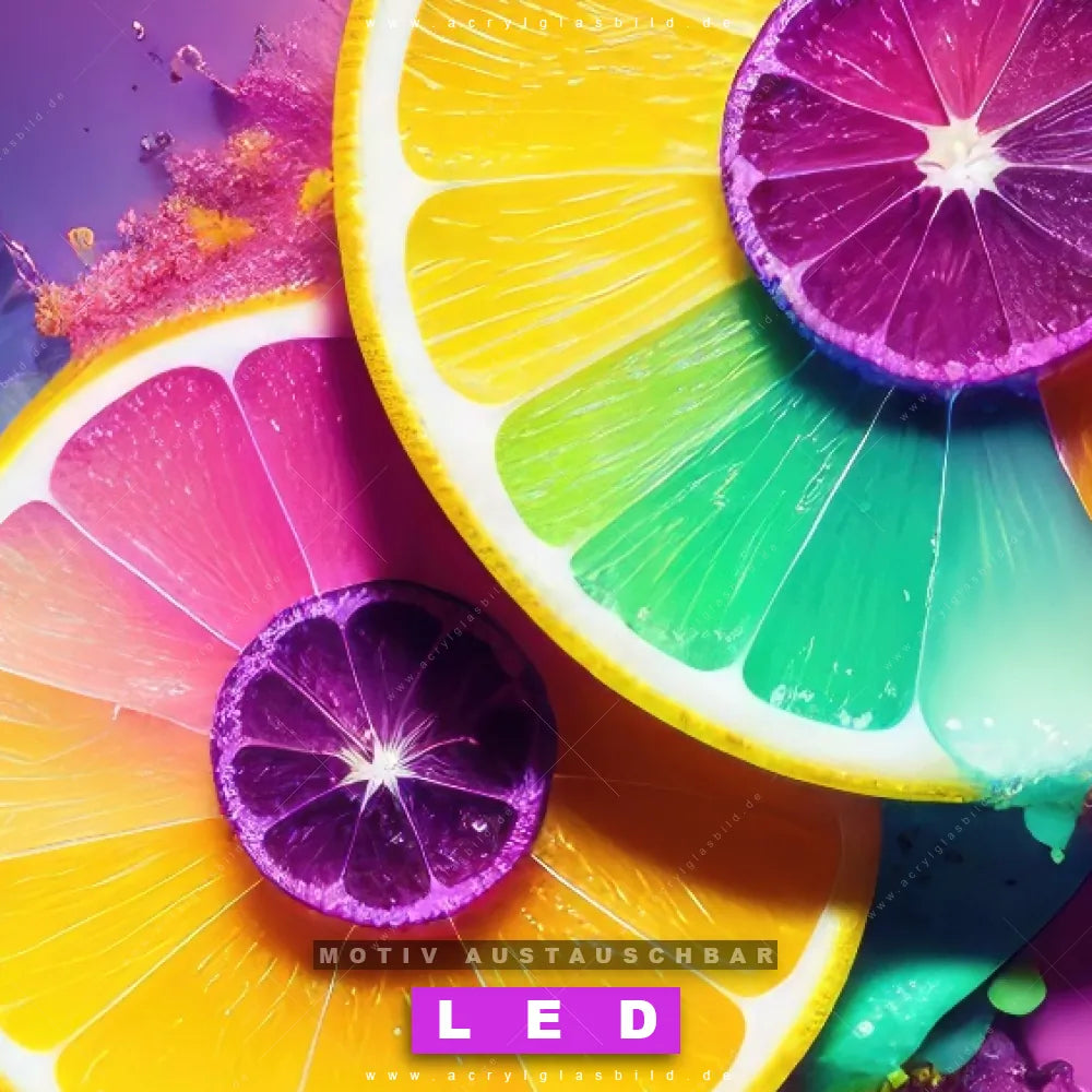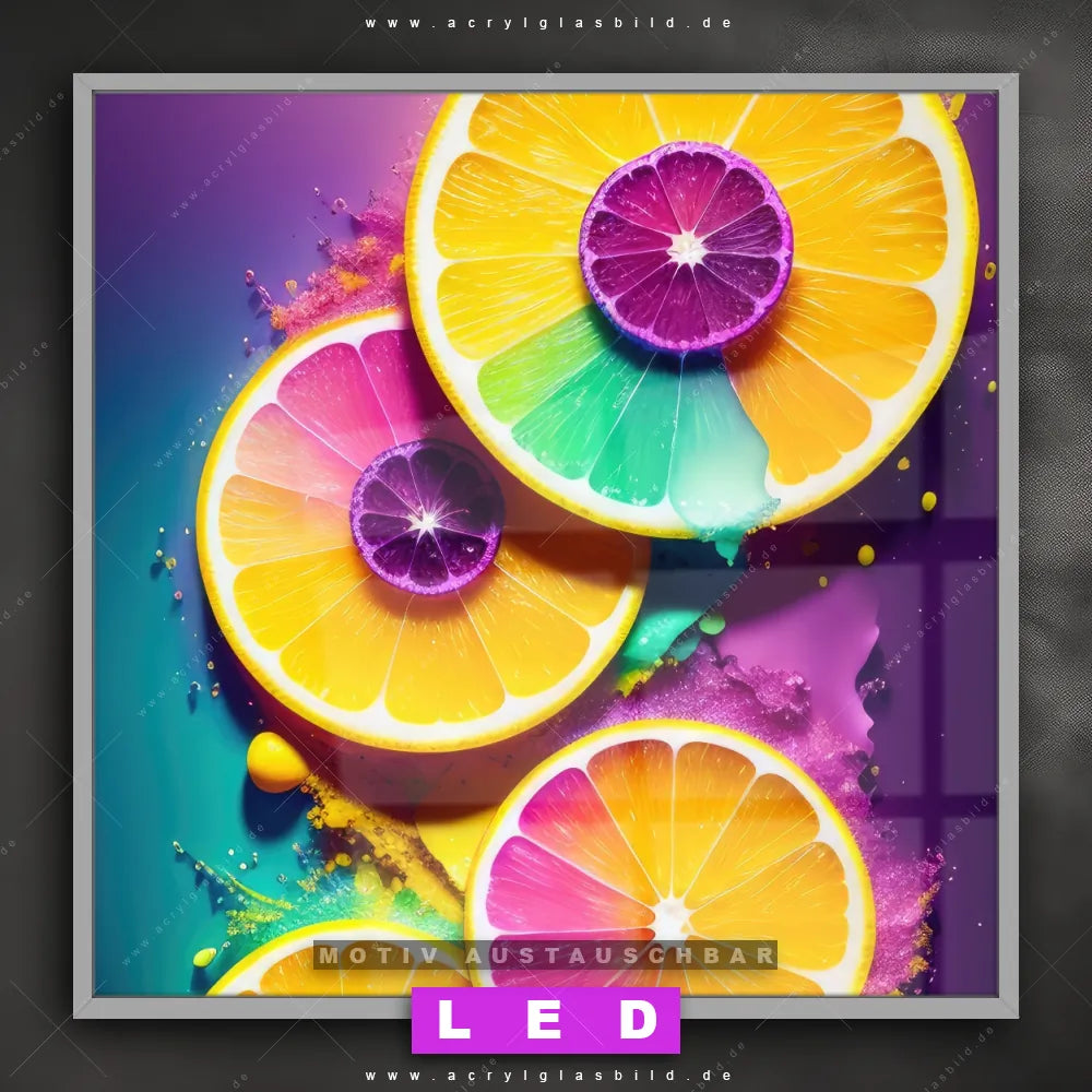 Begriffe wie Obst, Zitrusfrüchte, Früchte, frisch, spritzig, Spritzwasser, Spritzer, Tropfen, Zitrone, Farbe, Farbspritzer haben dich auf der Suche nach deinem neuen LED Wandbild aus Acrylglas inspiriert? Dann sollte das LED Acrylglasbild Neon Zitrusfrüchte den Weg zu dir finden.