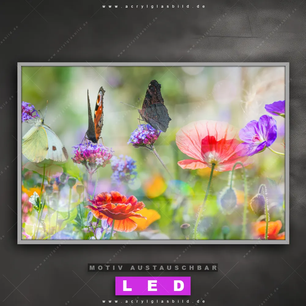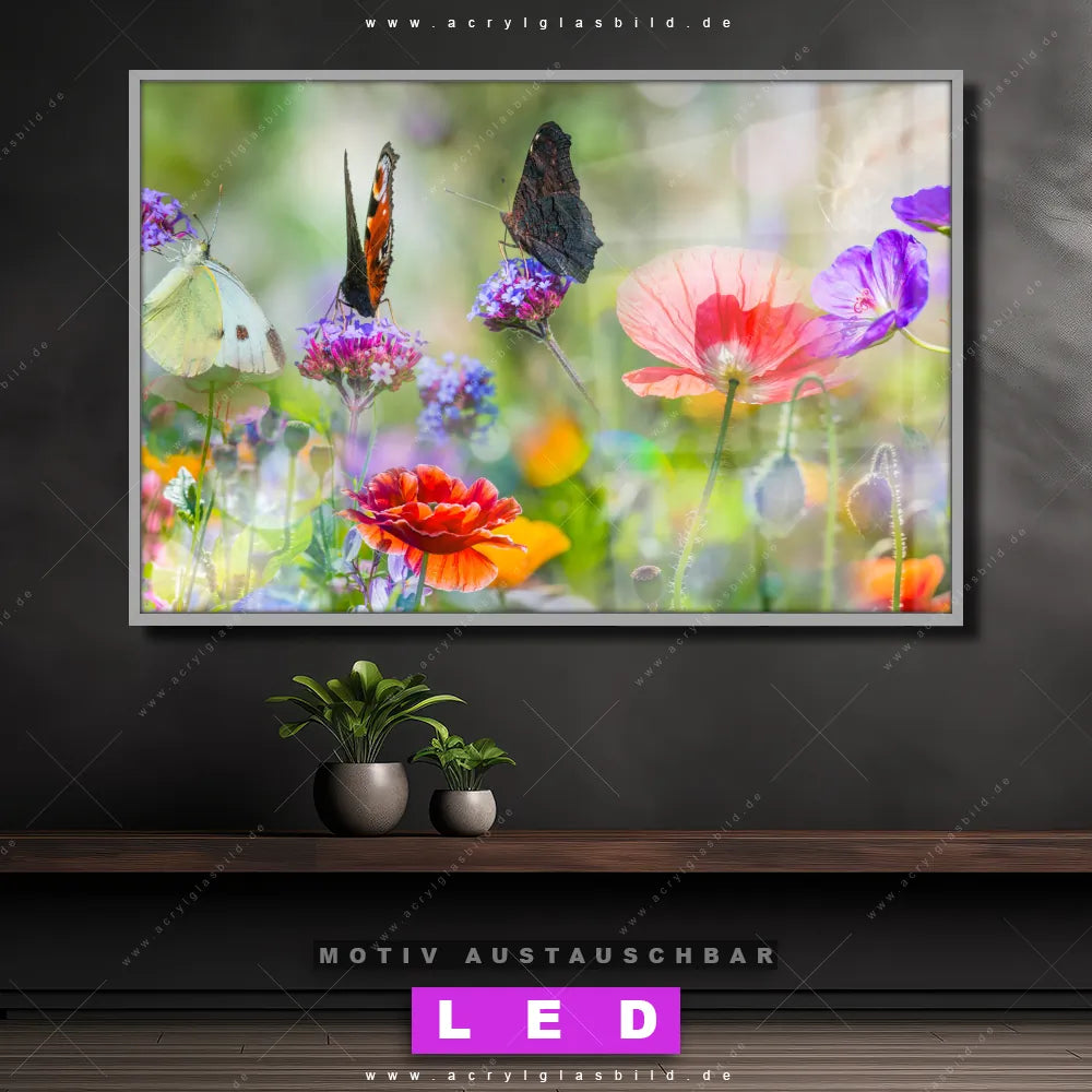 LED Acrylglasbild Canvalight® DIA | Blumenwiese mit Schmetterlingen | Querformat